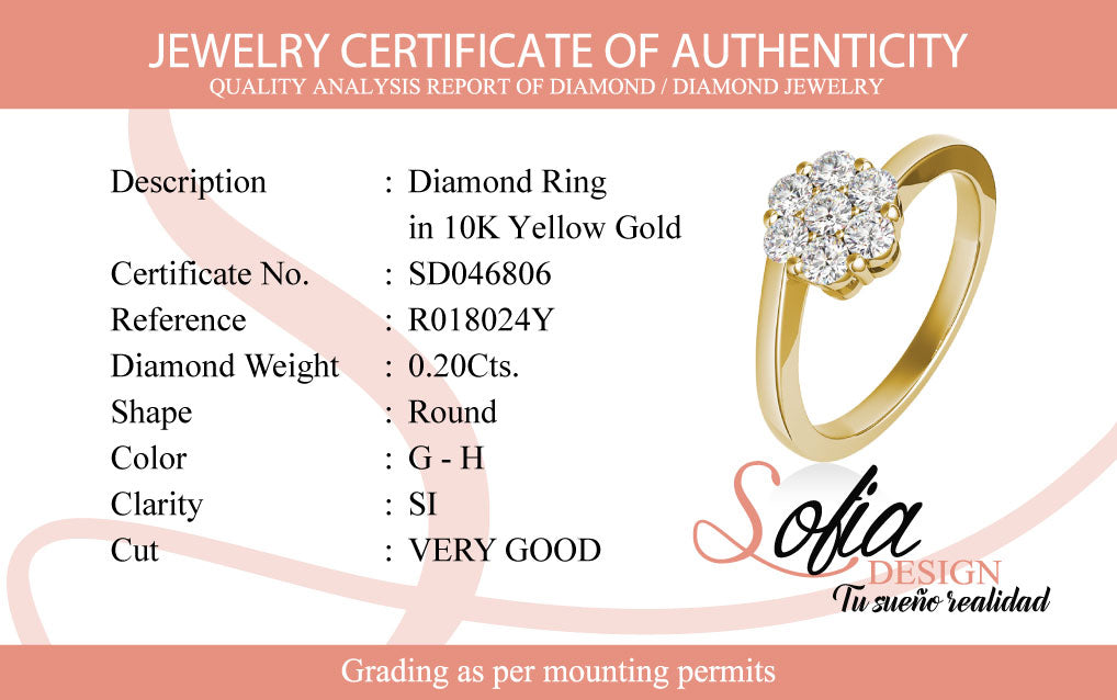 (SOFIA) Anillo (flor) con diamantes en oro amarillo 10k