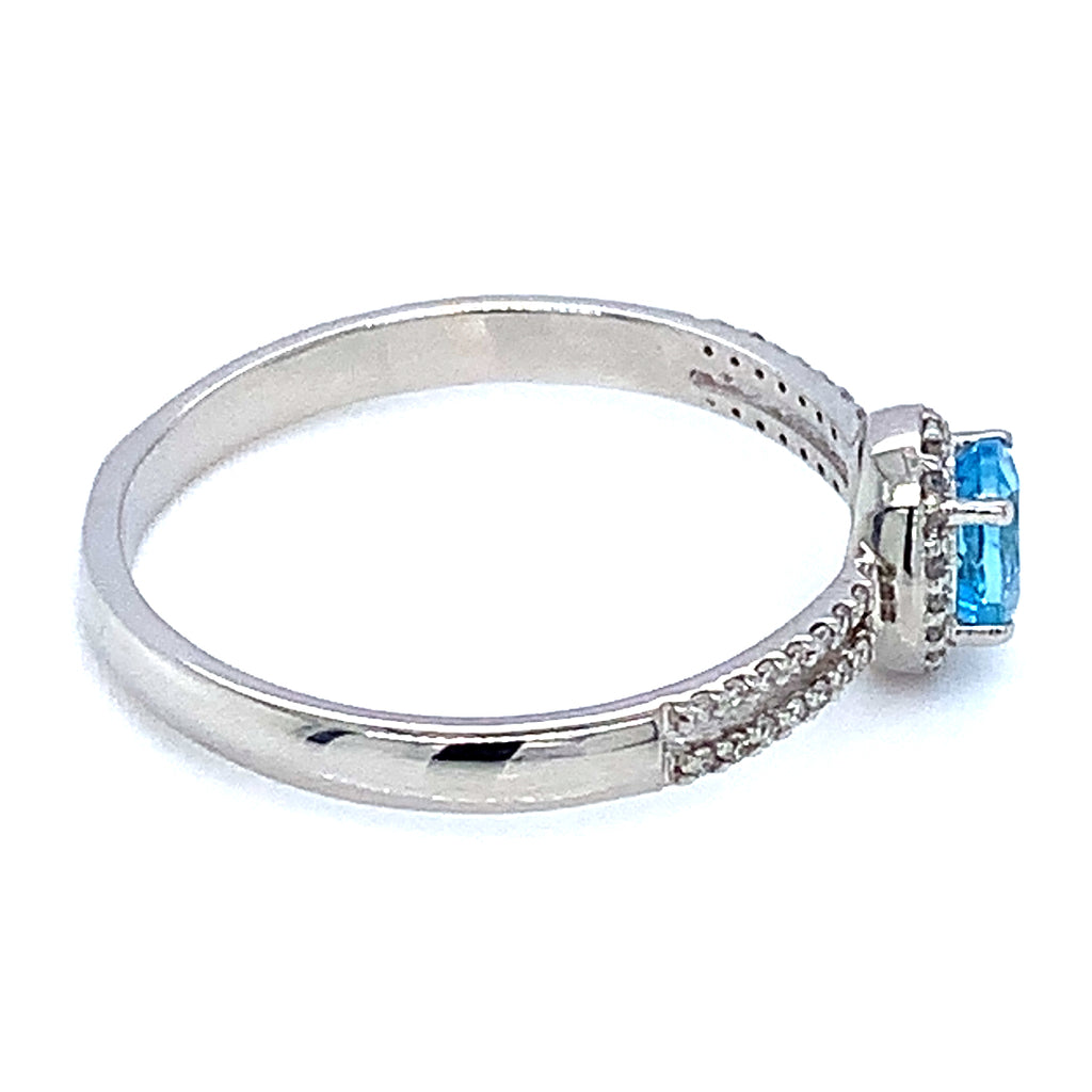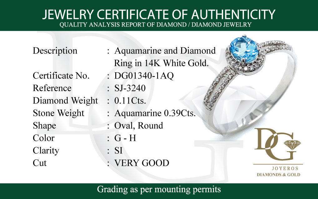 Anillo de aguamarina con diamantes en oro blanco 14kt.