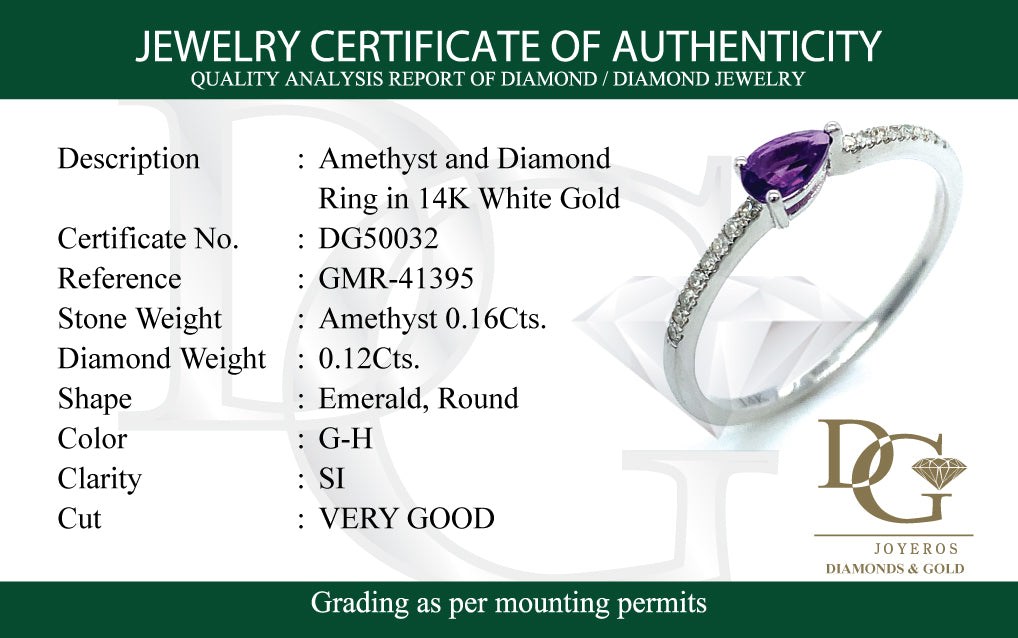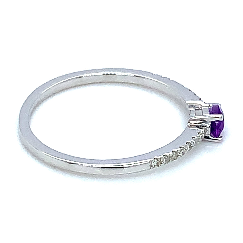 Anillo de amatista y diamantes en oro blanco de 14Kt.