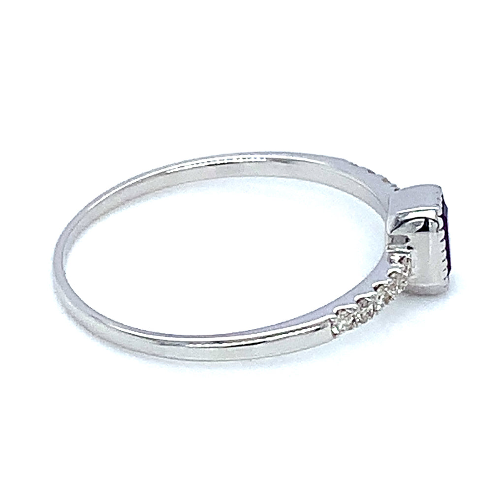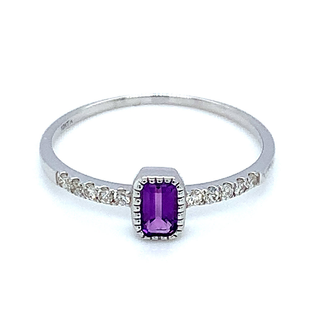 Anillo de amatista con diamantes en oro blanco 10kt.