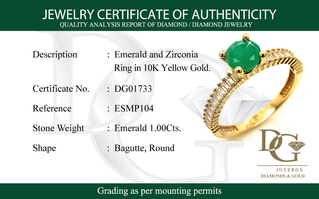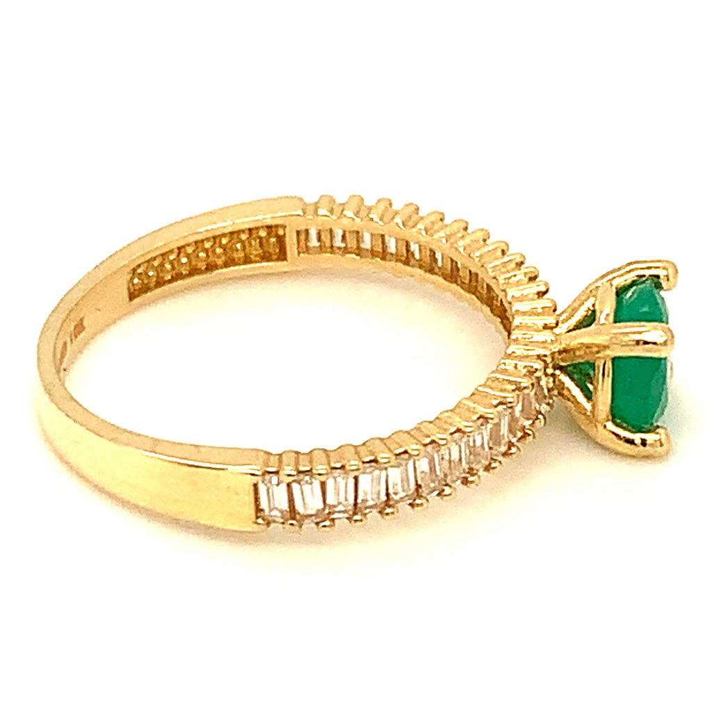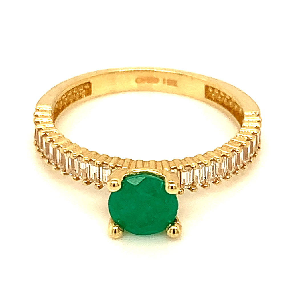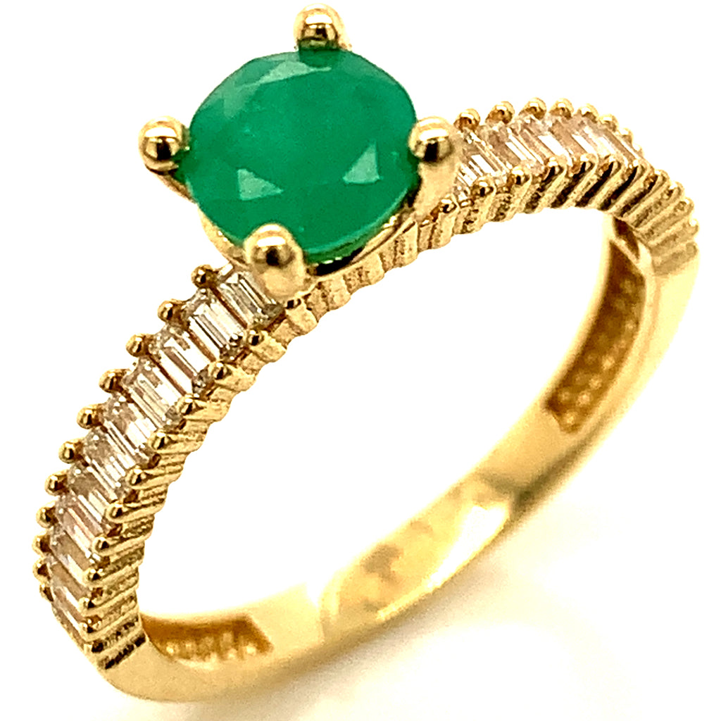 Anillo de esmeralda con circones en oro amarillo 14kt.