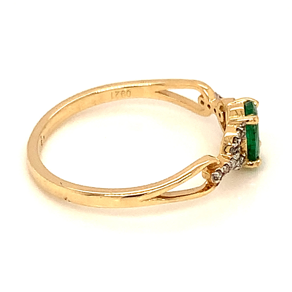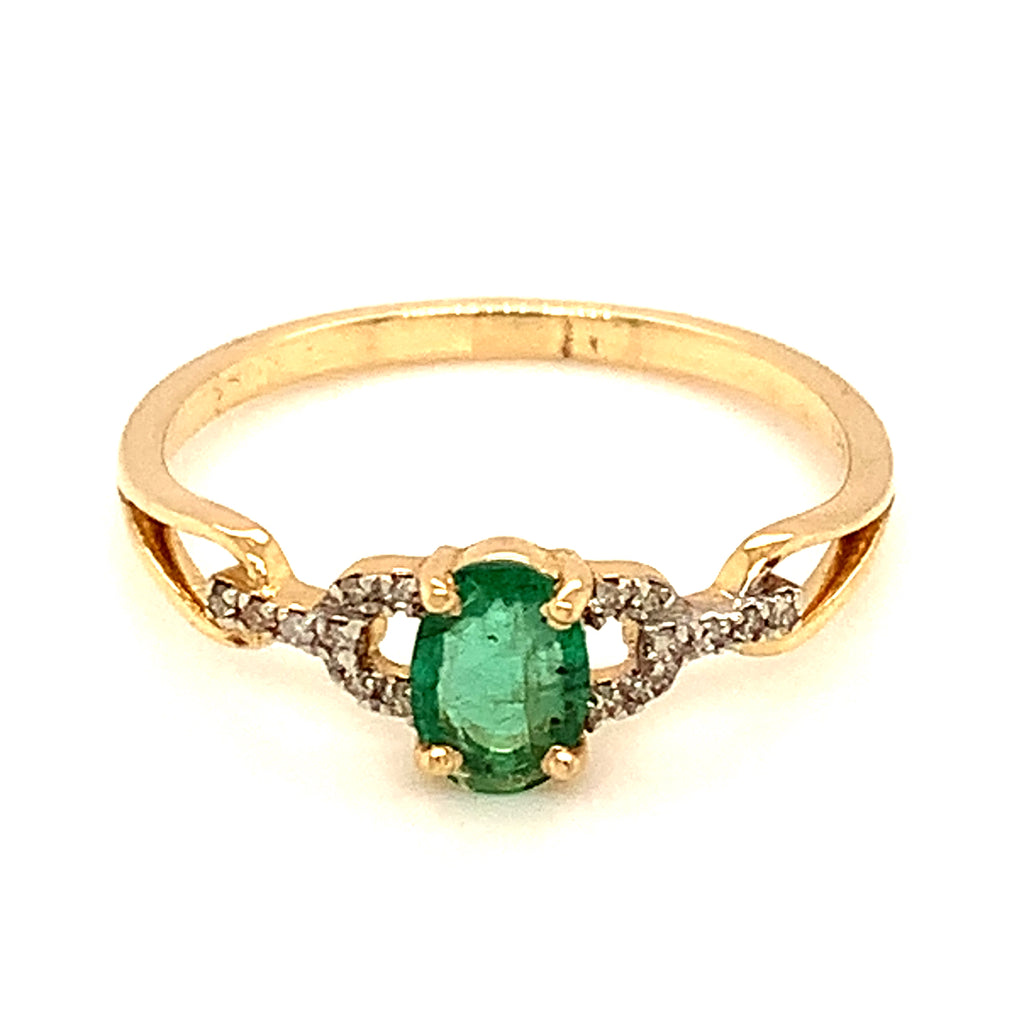 Anillo de esmeralda con diamantes en oro amarillo 14kt.