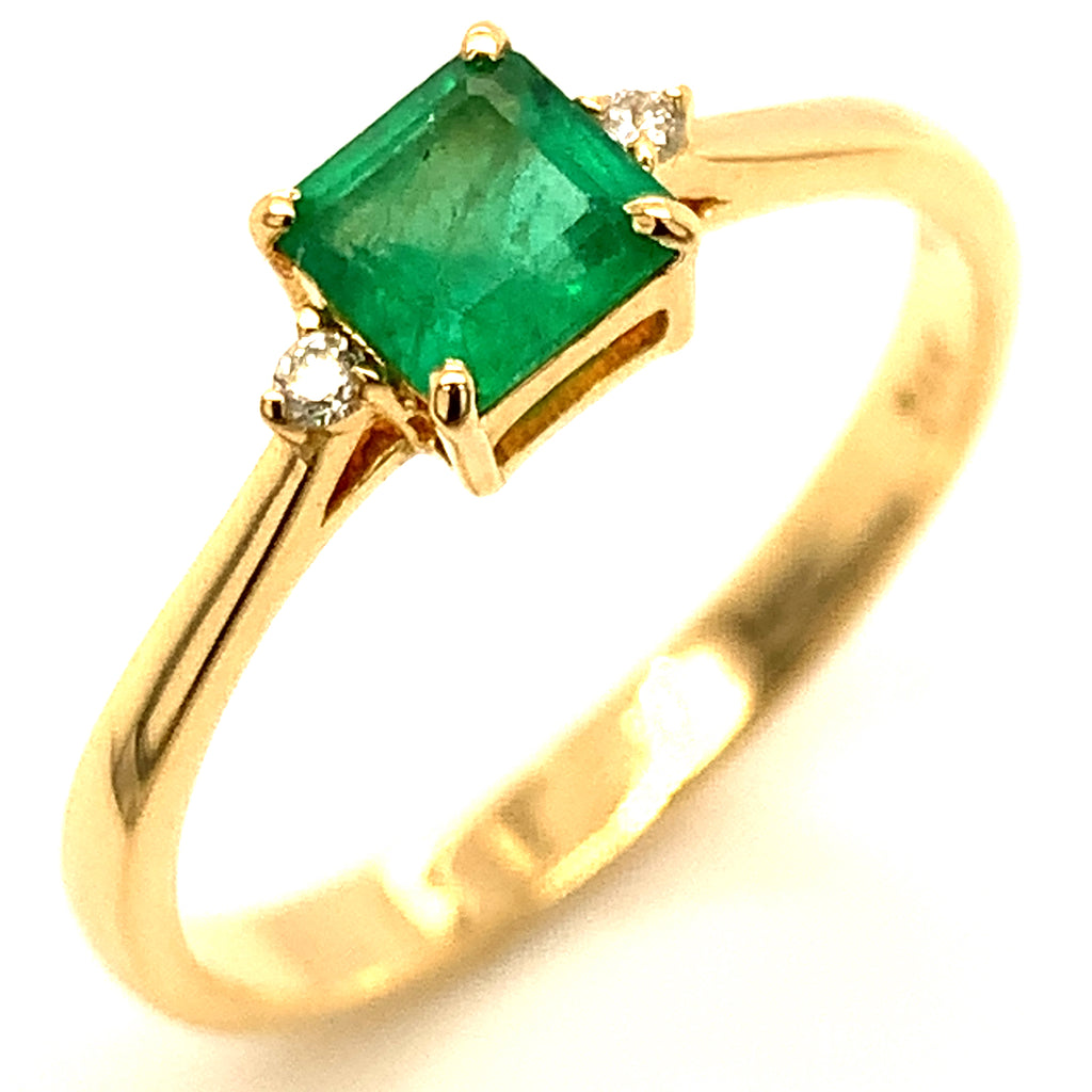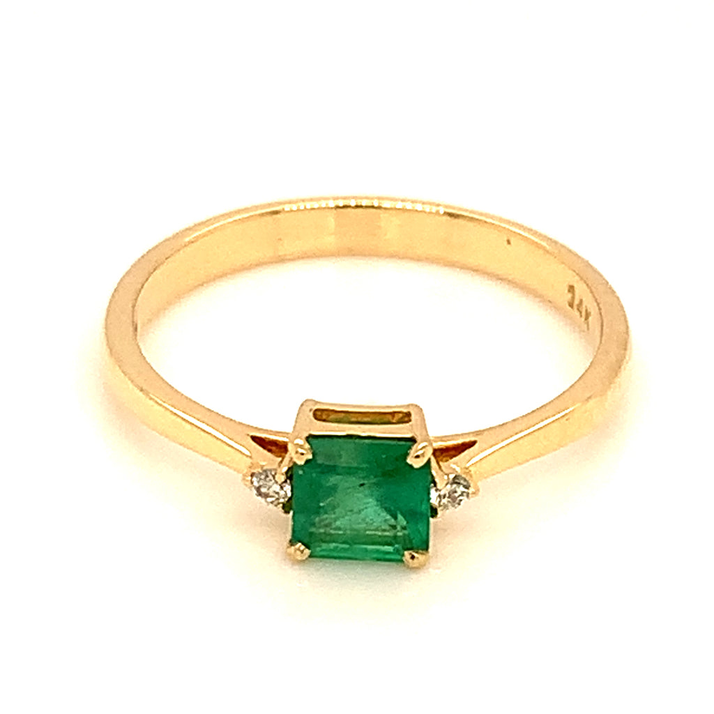Anillo de esmeralda con diamantes en oro amarillo 14kt.