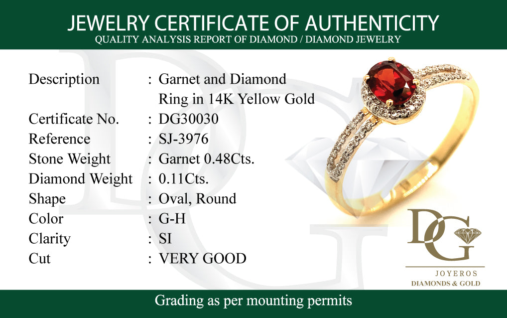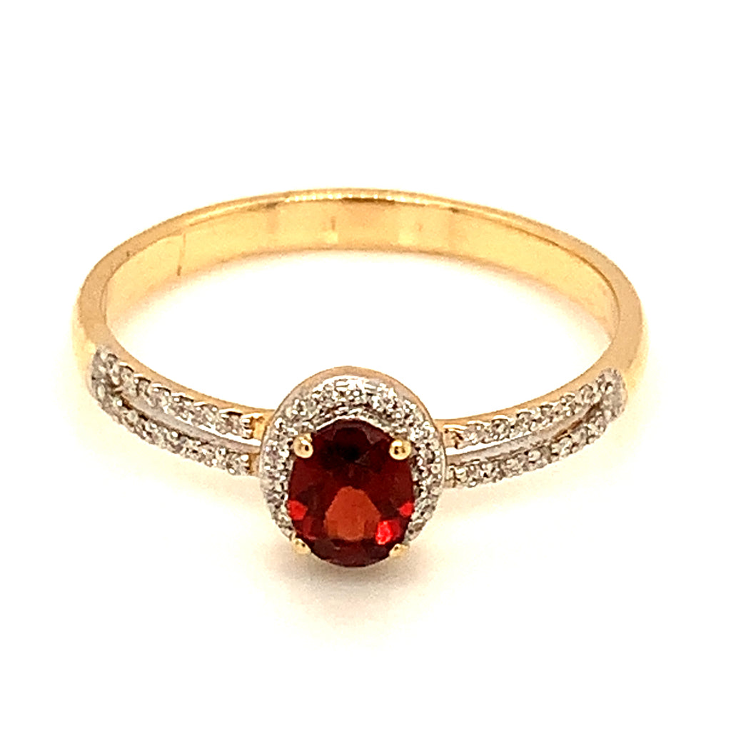 Anillo de granate con diamantes en oro amarillo 14kt.