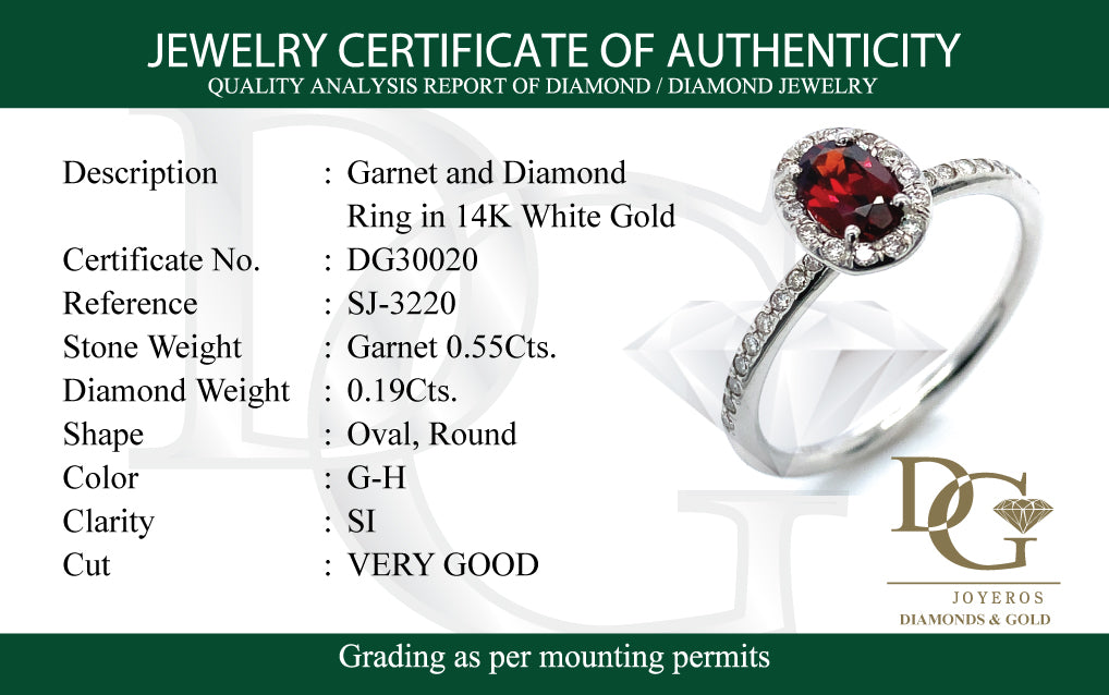 Anillo de granate con diamantes en oro blanco 14kt.