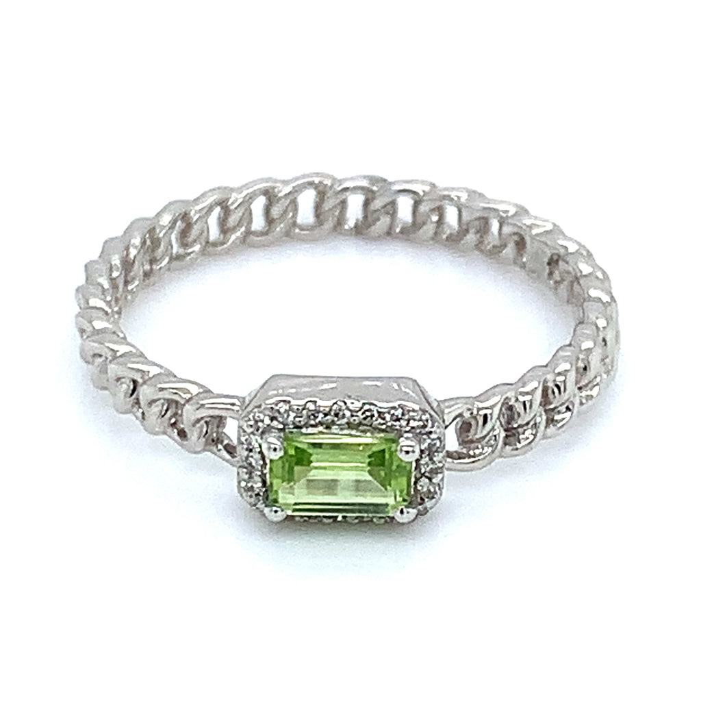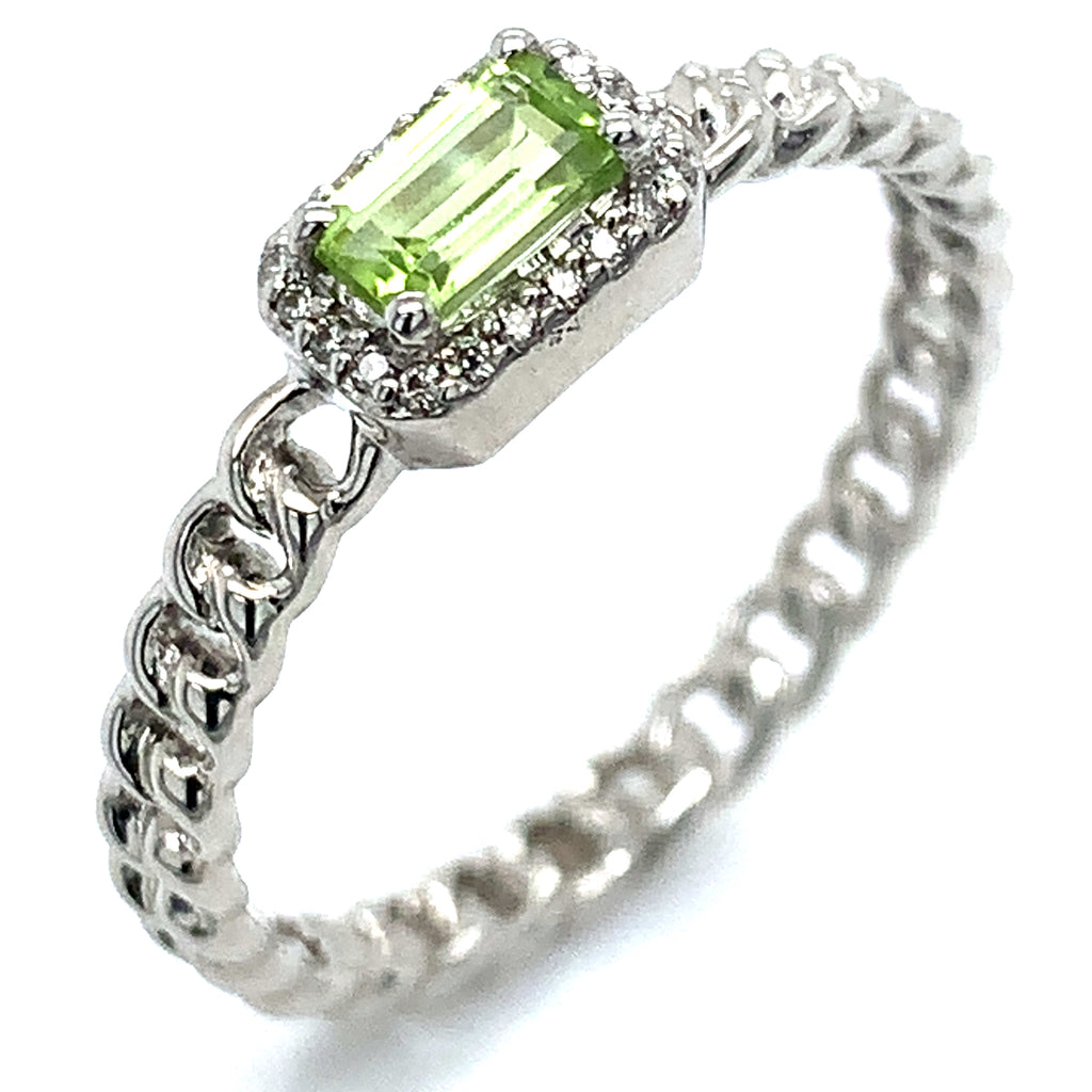 Anillo de Peridoto con diamantes en oro blanco 14k.
