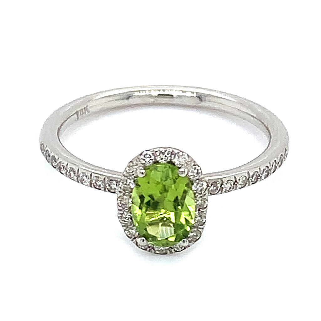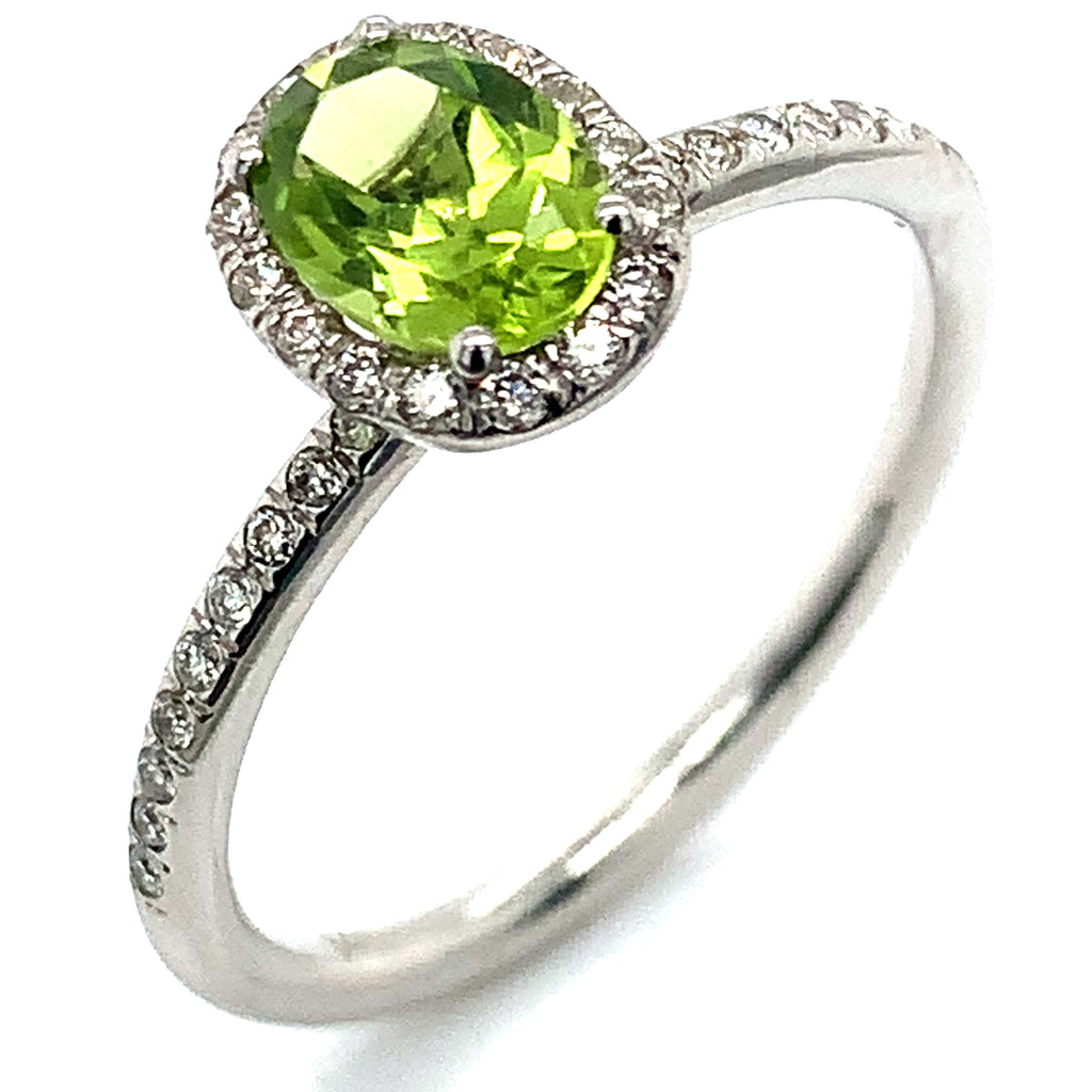 Anillo de Peridoto con diamantes en oro blanco 14k.