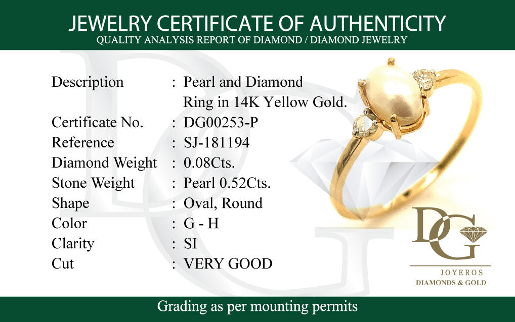 Anillo de perla con diamantes en oro amarillo 14kt.