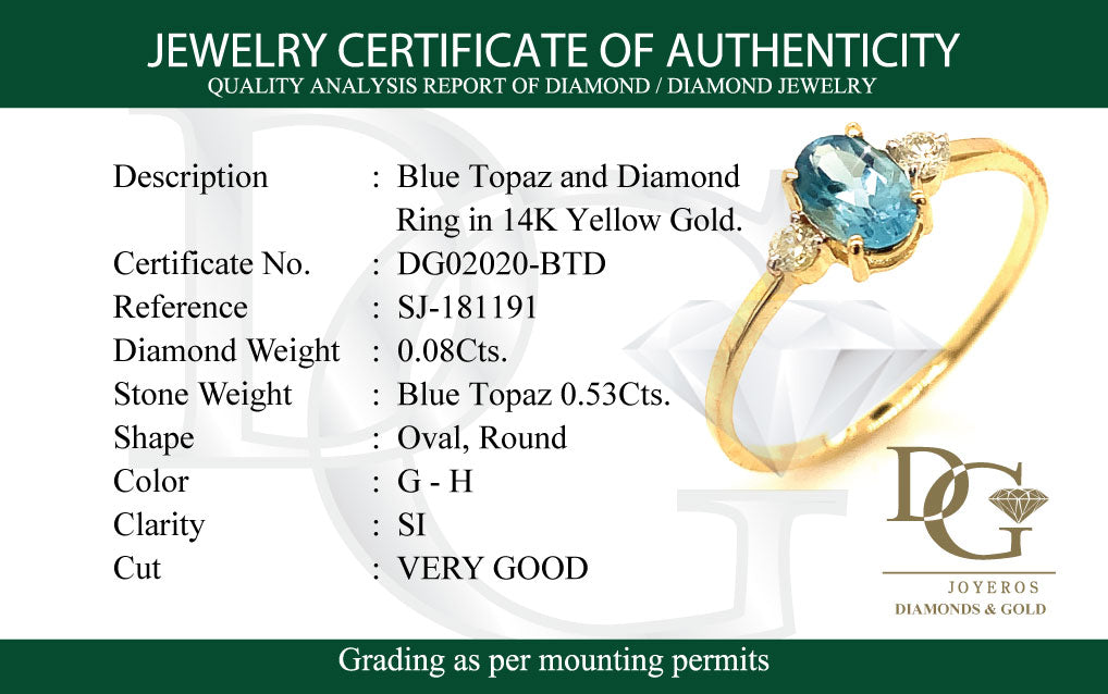Anillo de citrino con diamantes en oro amarillo 14kt.