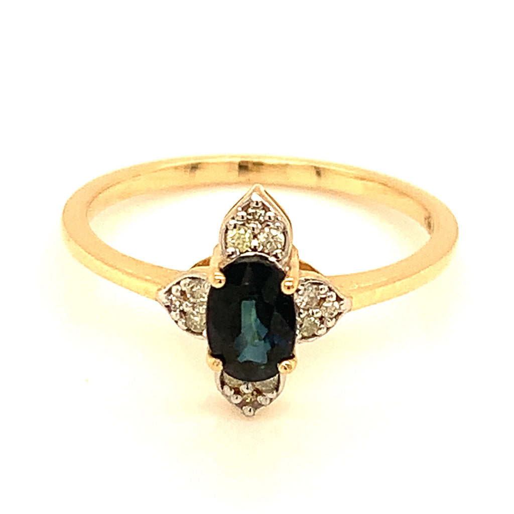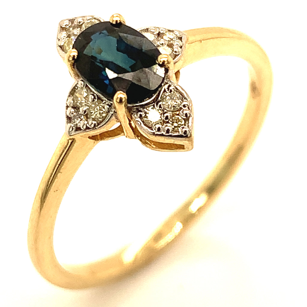 Anillo de Zafiro con diamantes en oro amarillo 14k.