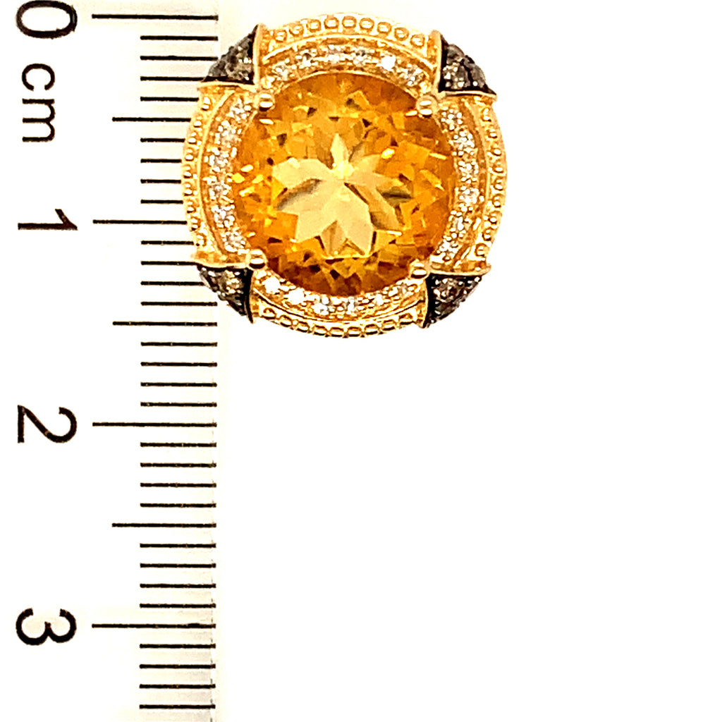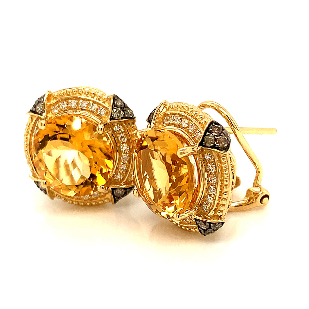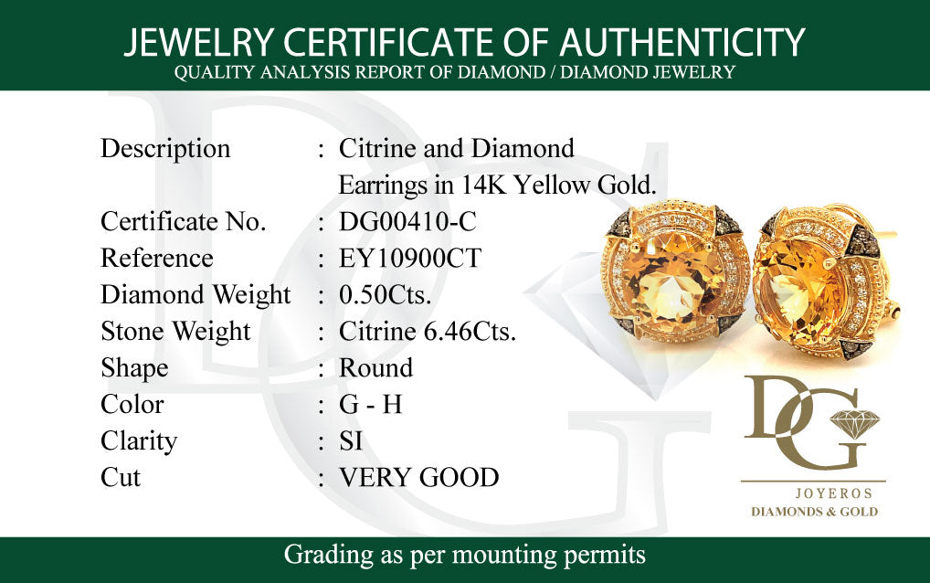 Aretes con citrino y diamantes en oro amarillo 14kt.