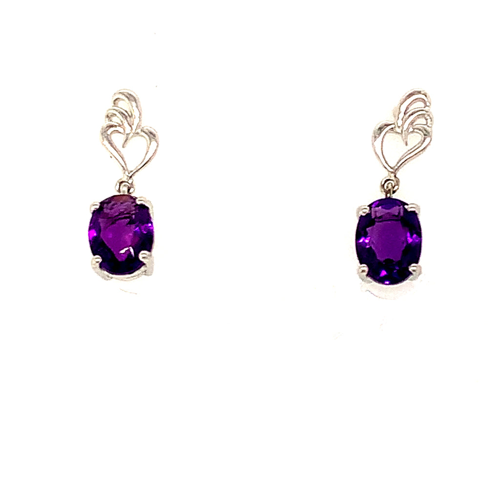 Aretes de cuarzo amatista en plata 925.