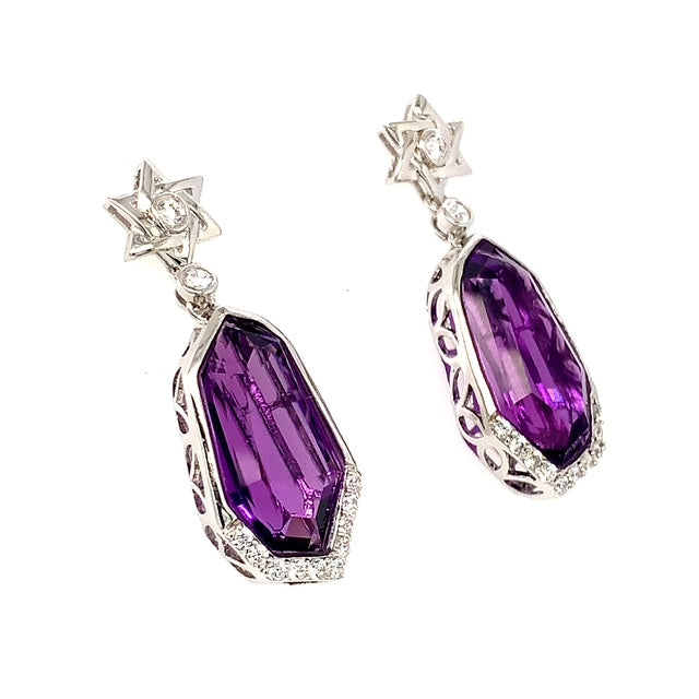 Aretes de cuarzo amatista en plata 925.