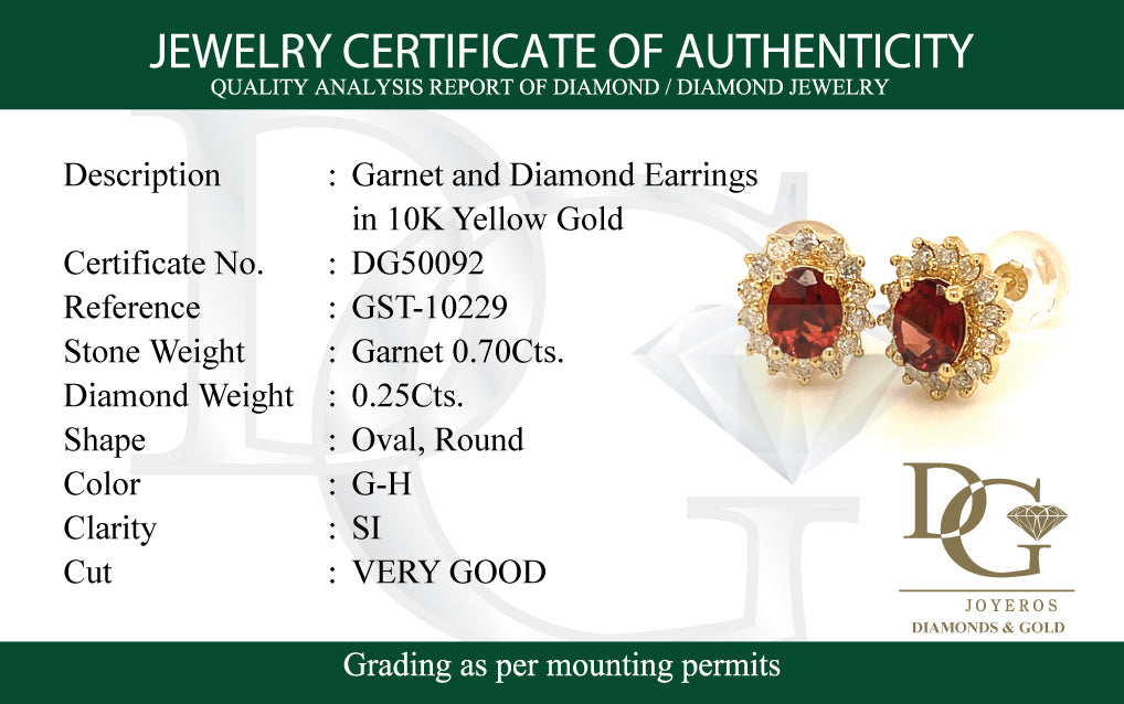 Aretes de Granate en oro amarillo 10k