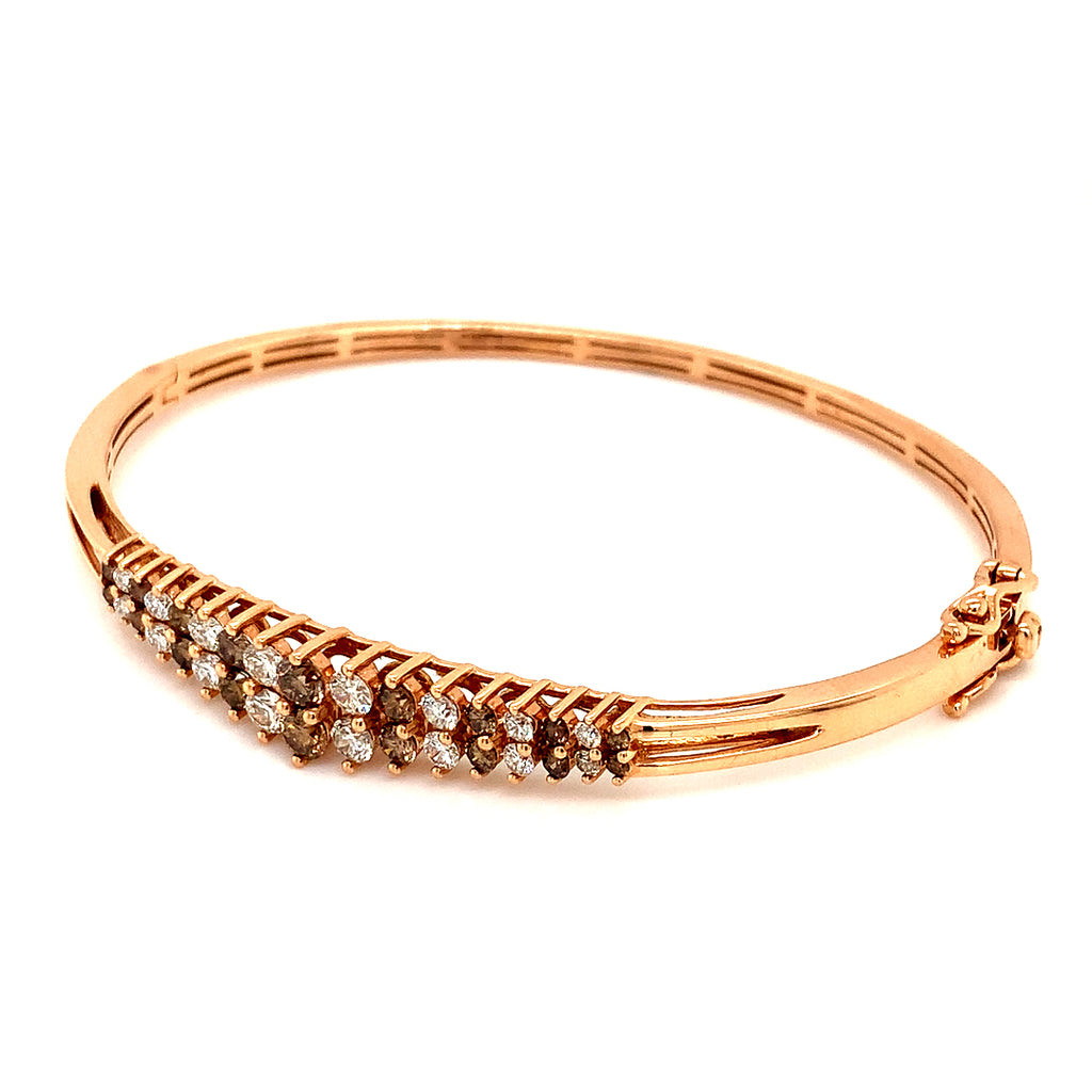 Caña con diamantes coñac y blancos en oro rosado 14kt.