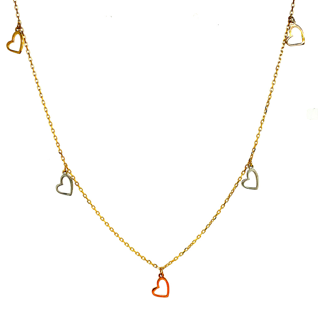 Collar (corazones) en oro tres tonos 10kt. 45cm