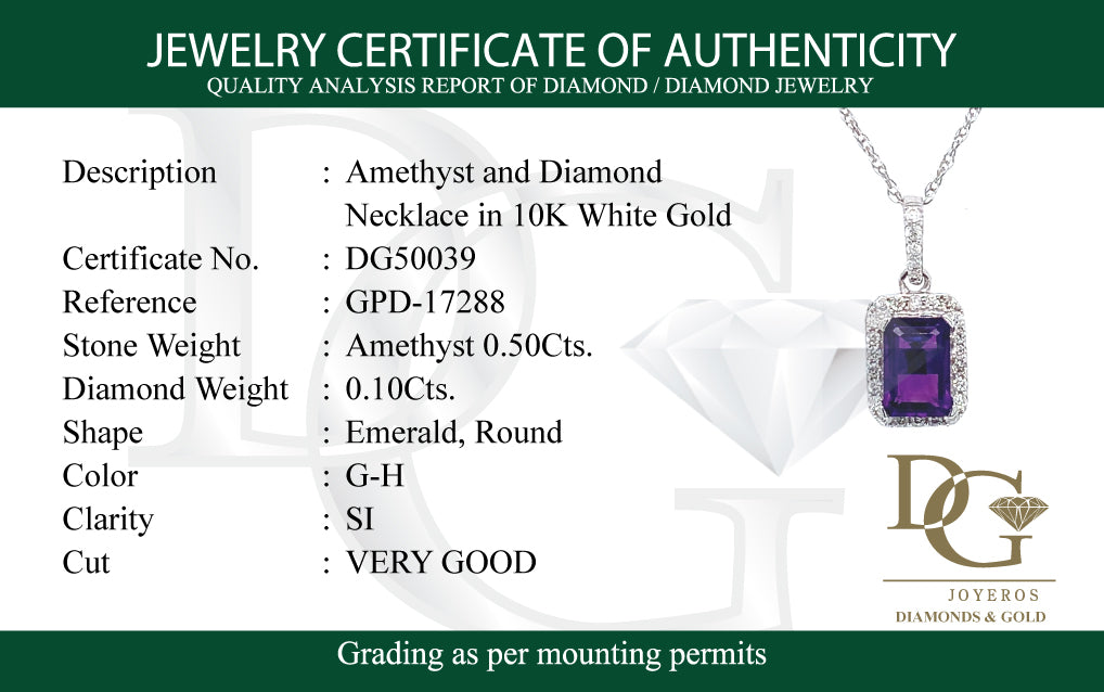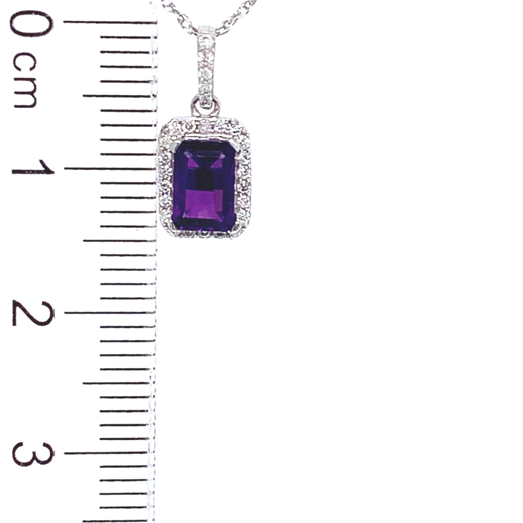 Collar de Amatista con diamantes en oro blanco 10k 45cm