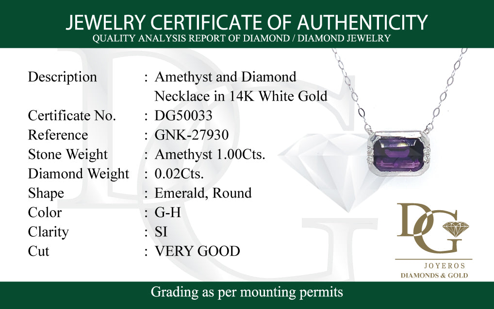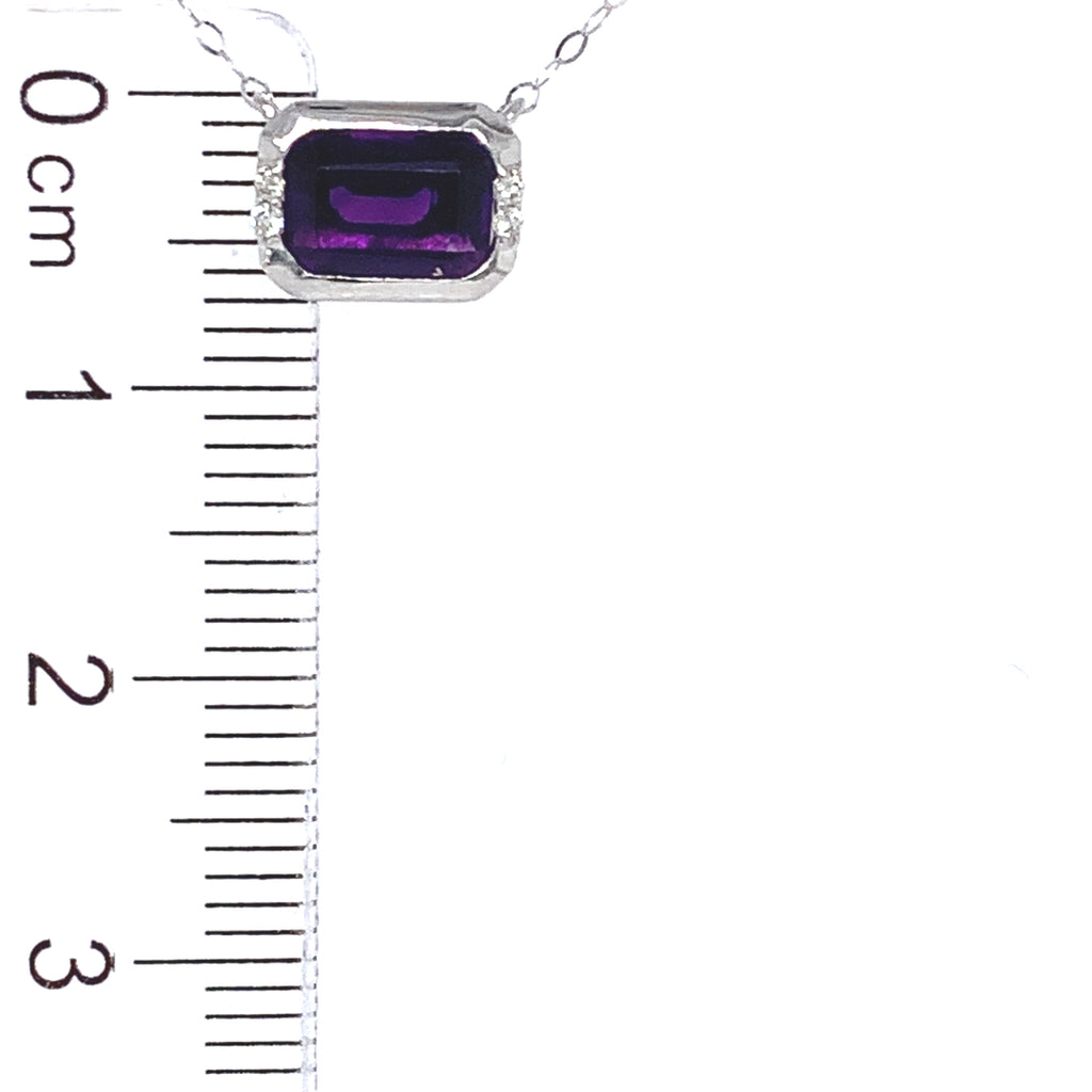Collar de amatista con diamantes en oro blanco 14kt.