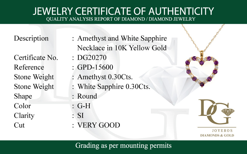 Collar de Amatista con zafiros blancos en oro amarillo 10k 45cm