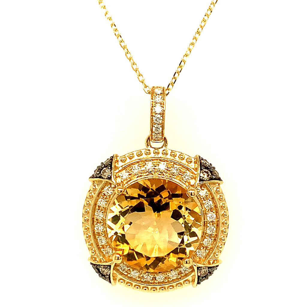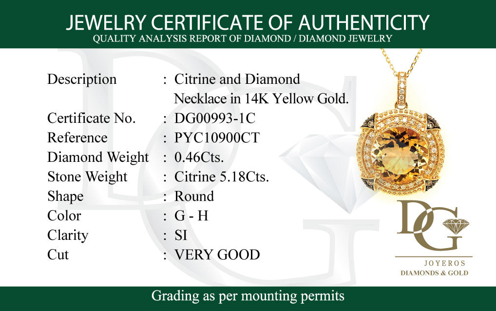 Collar de citrino con diamantes en oro amarillo 14kt.