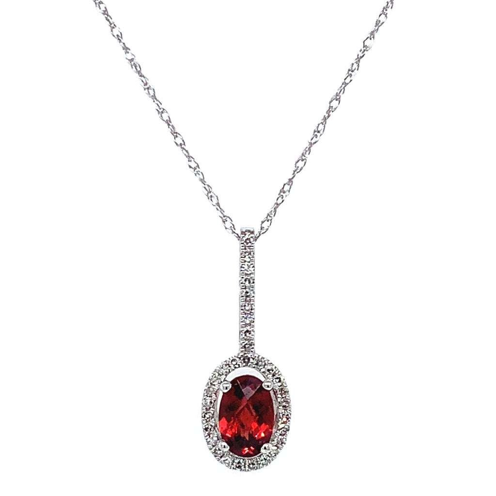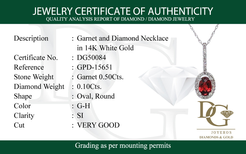 Collar de granate con diamantes en oro blanco 14k