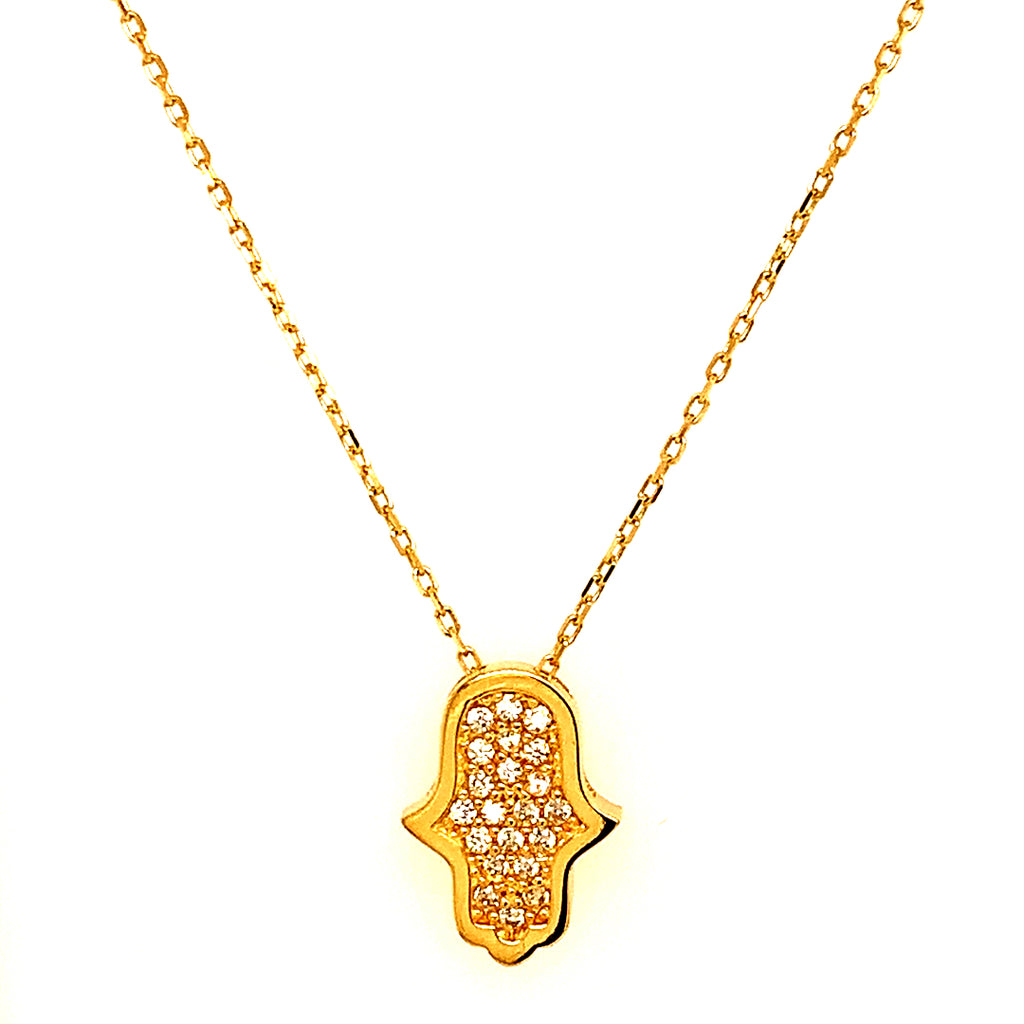 Collar (hamsa) con circones en oro amarillo 18kt. 45cm