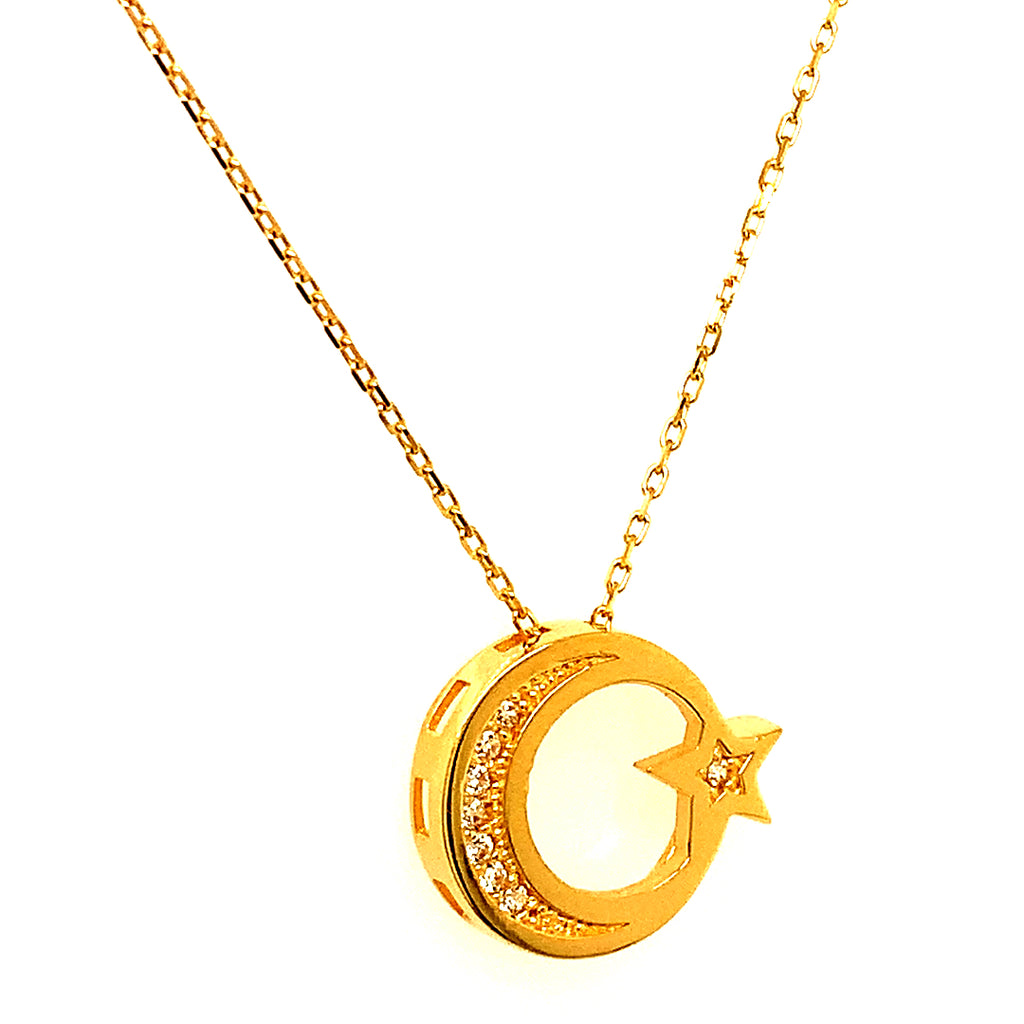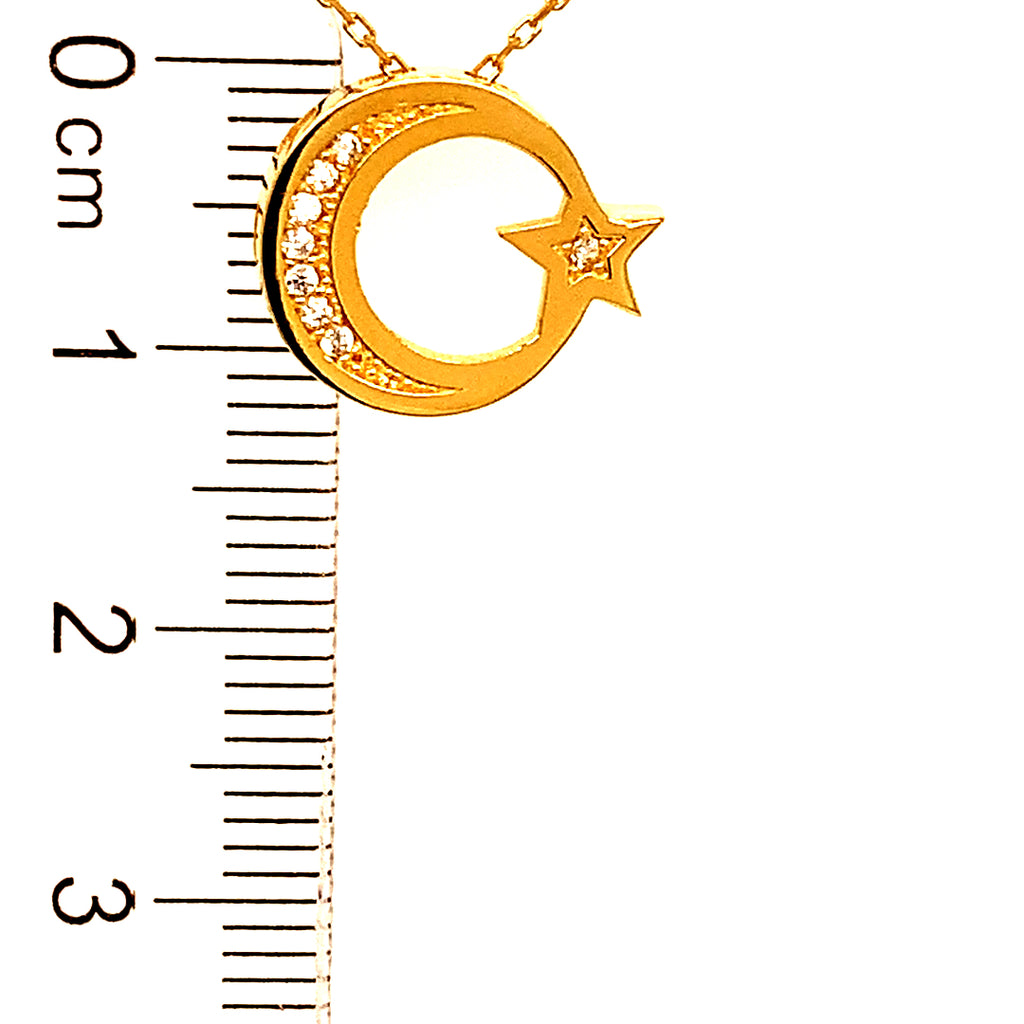 Collar (luna y estrella) con circones en oro amarillo 18kt. 45cm