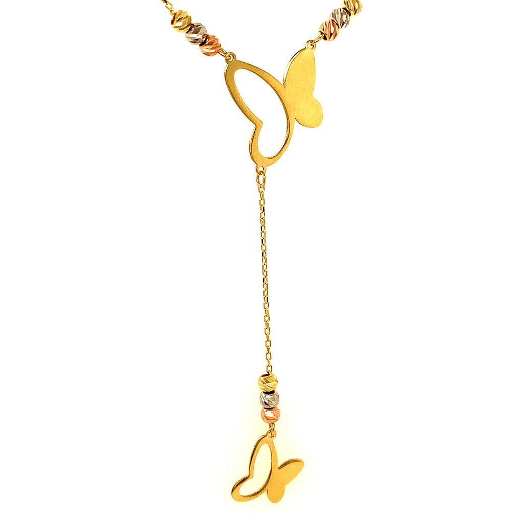 Collar tipo rosario (mariposa) en oro tres tonos 10k. 43/45cm