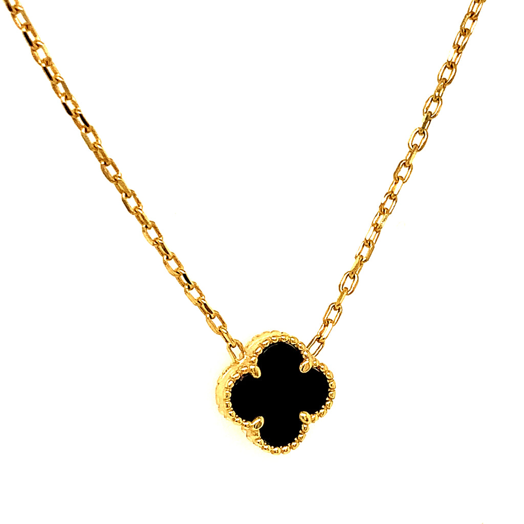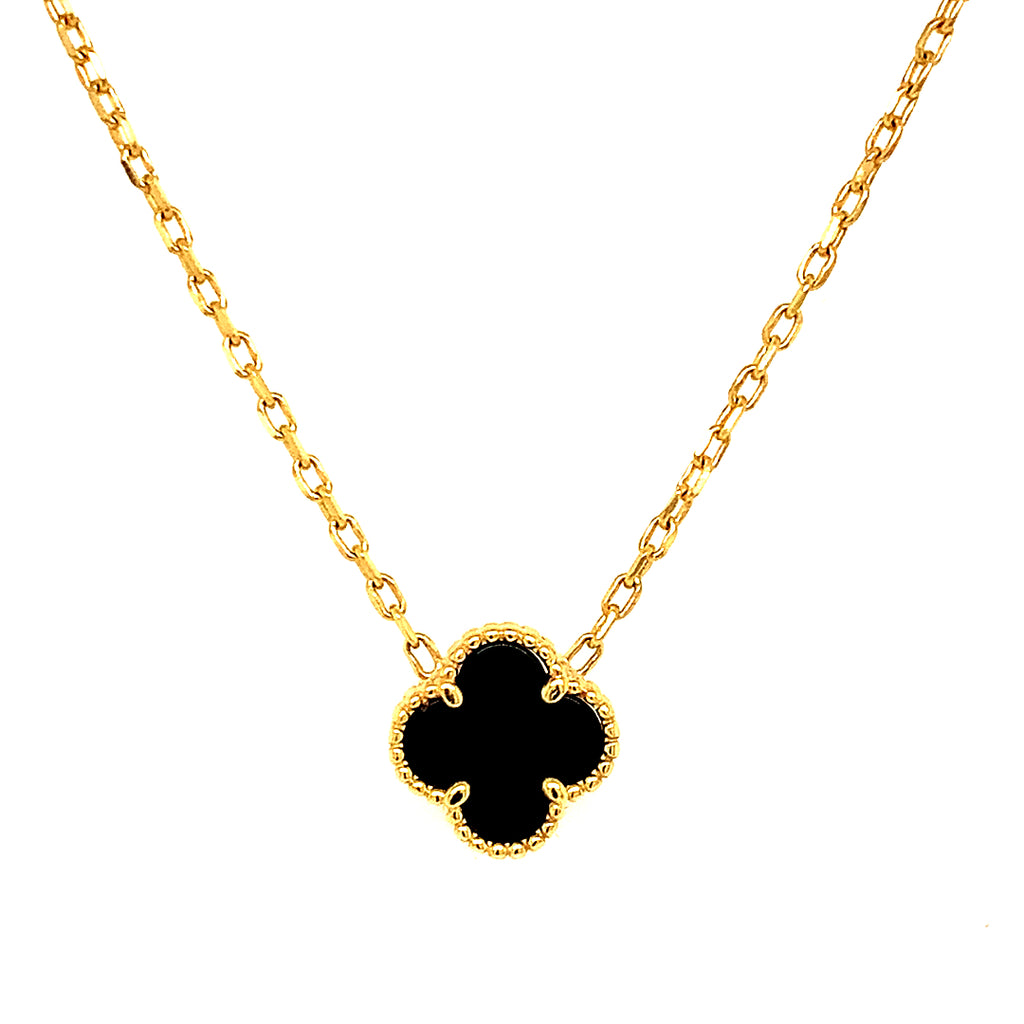 Collar (trébol onix negro) en oro amarillo 10kt. 43.5/46.5cm