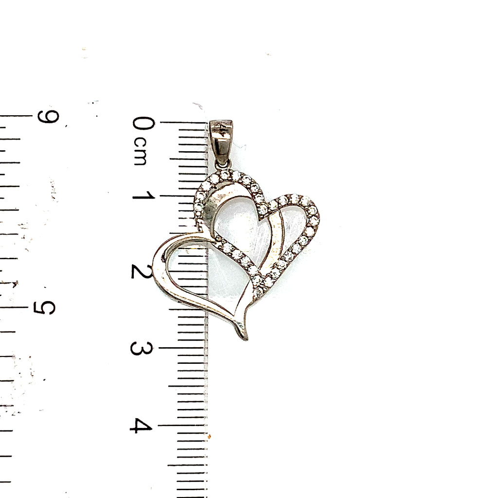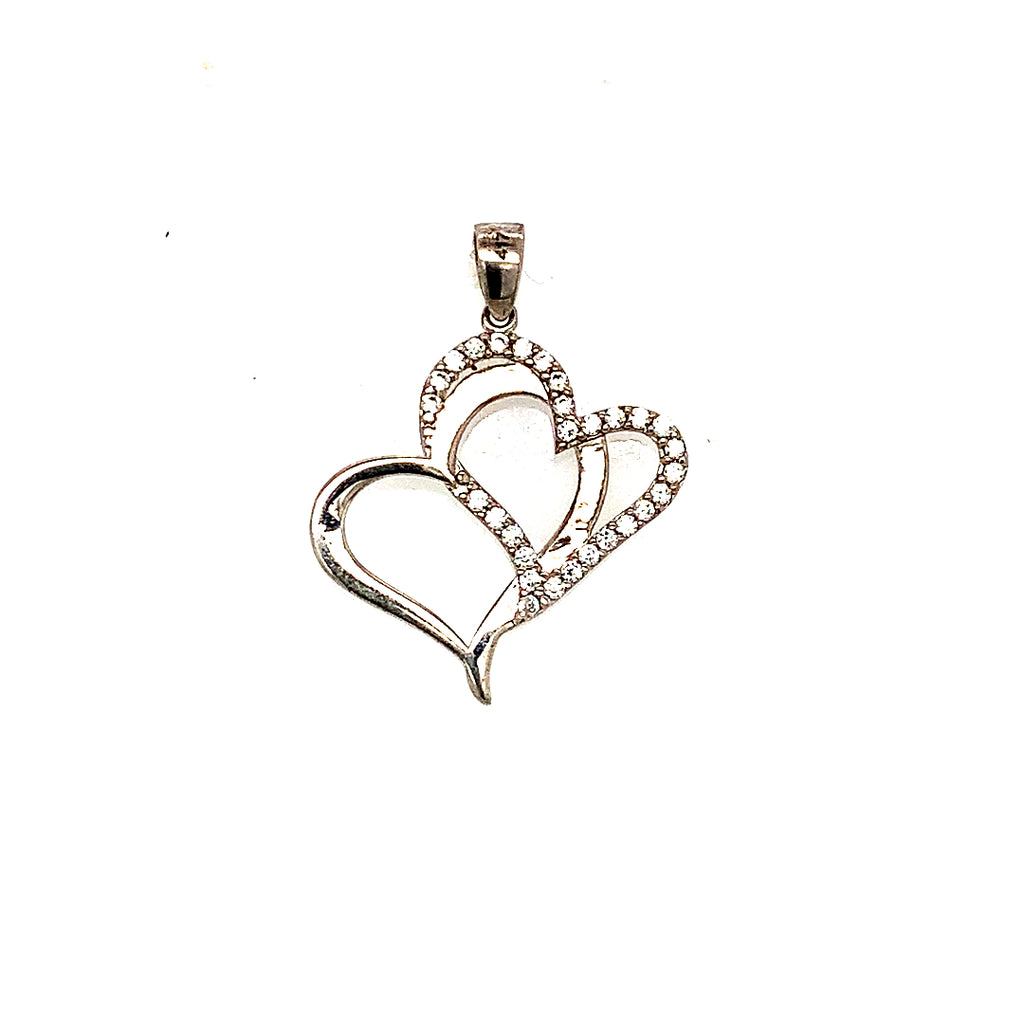 Dije (corazones) con circones en oro blanco 10kt.