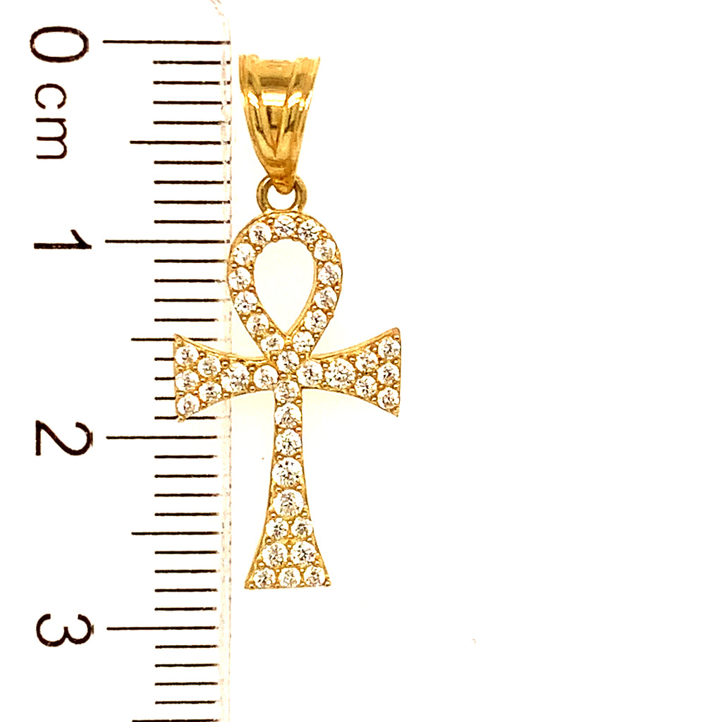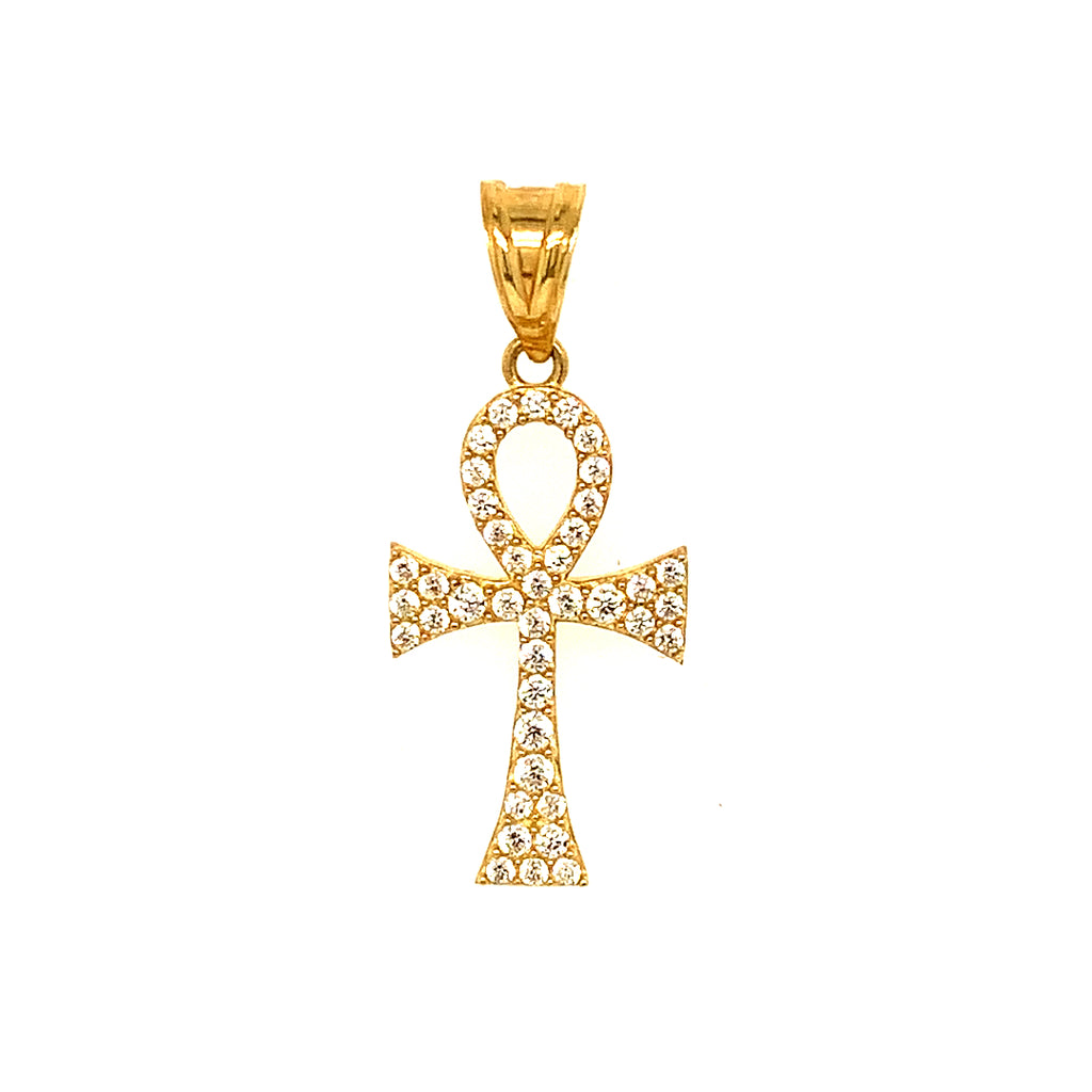 Dije (Cruz de la Vida) con circones en oro amarillo 10kt.