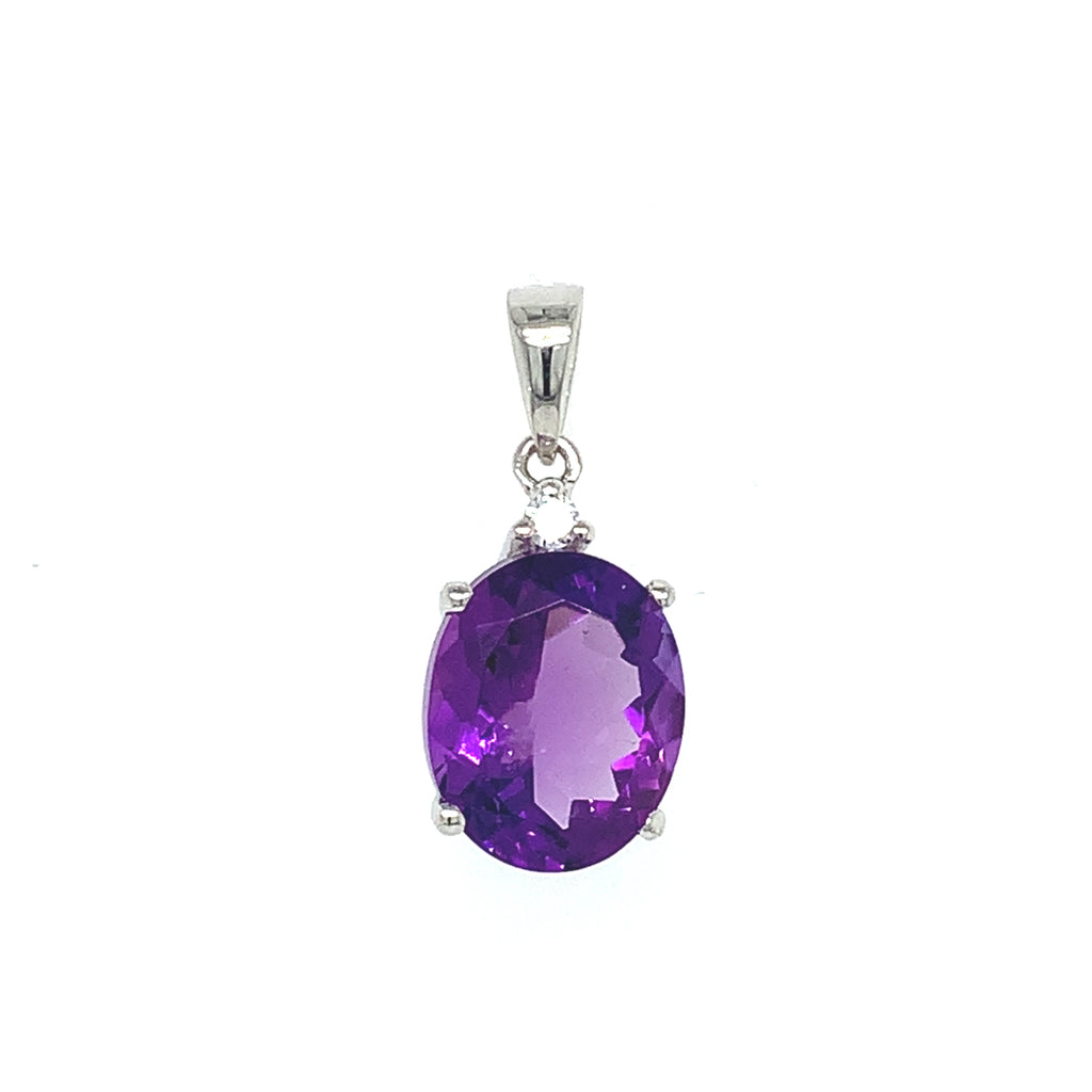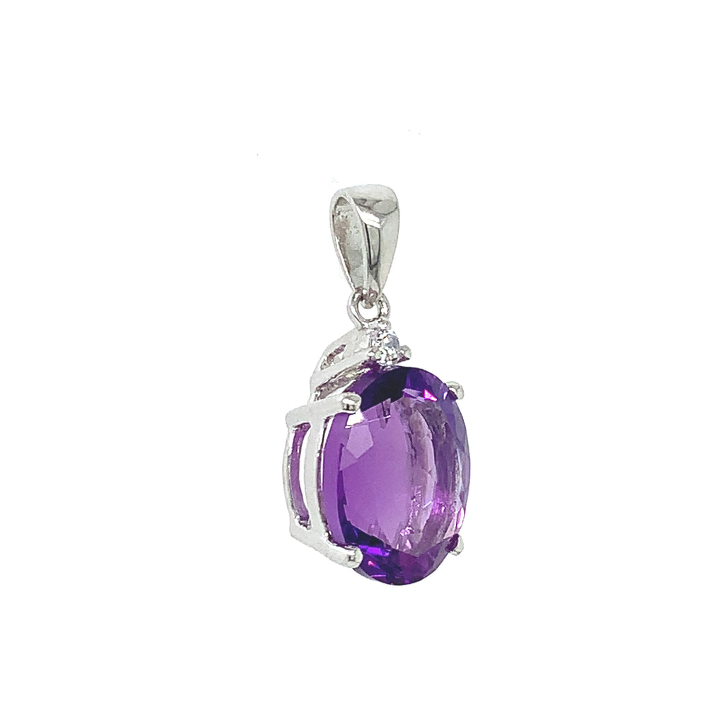 Dije de cuarzo amatista con circones en plata 925.