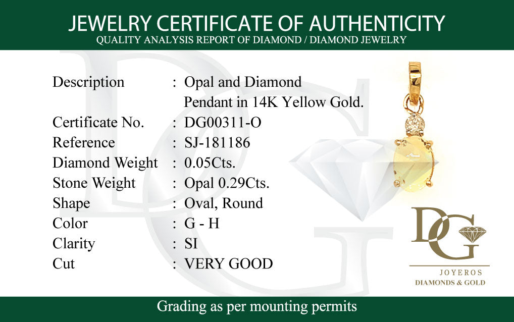 Dije de ópalo con diamantes en oro amarillo 14kt.