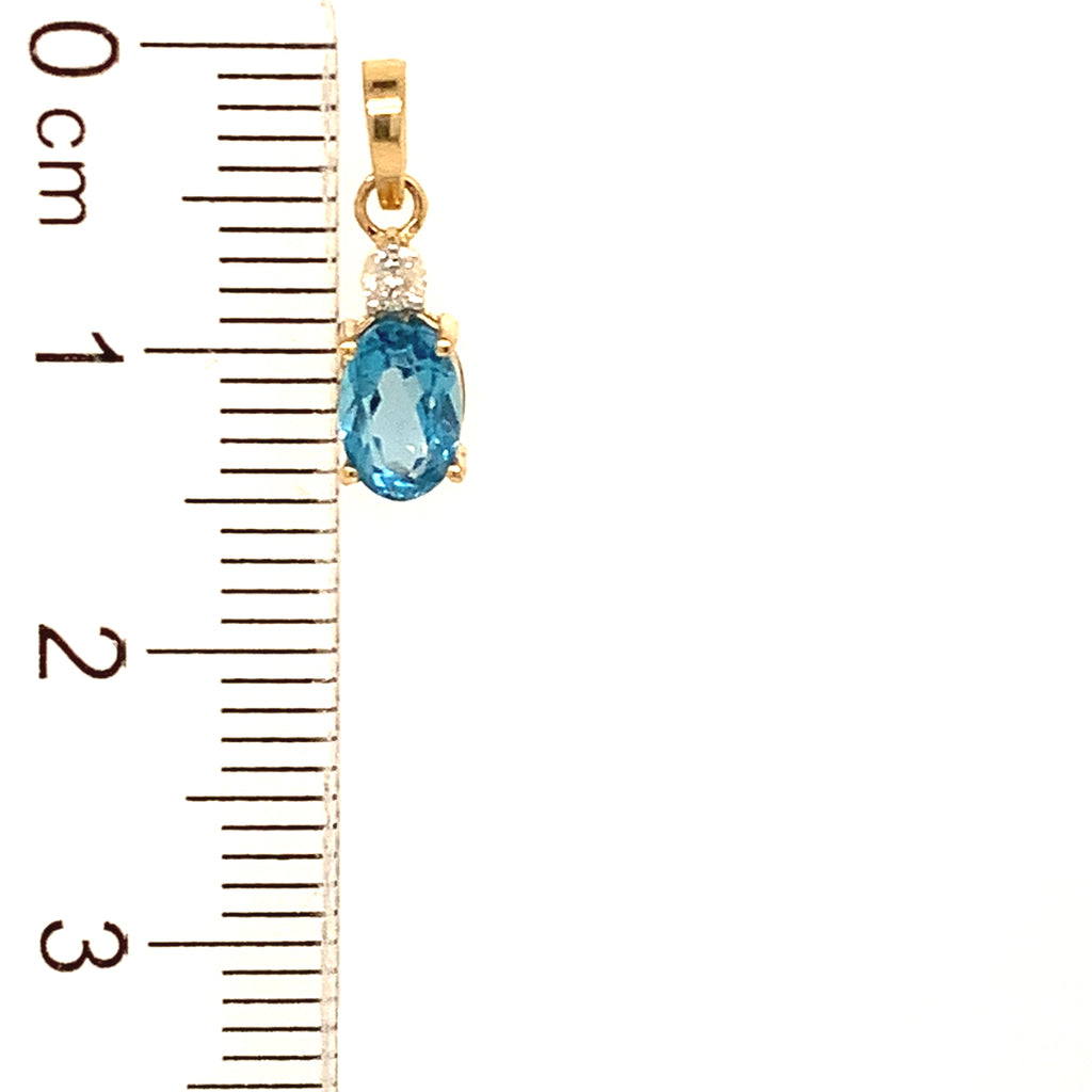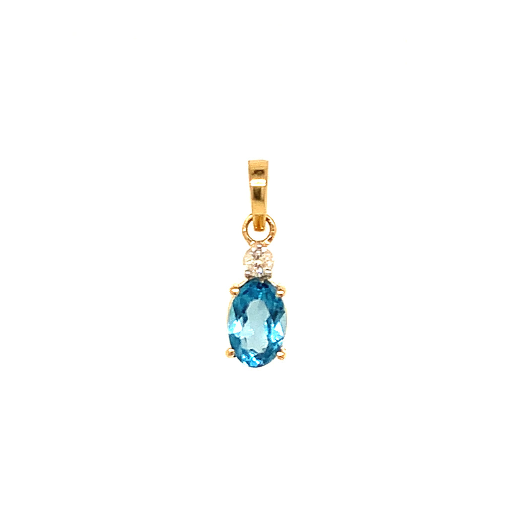 Dije de topacio azul con diamantes en oro amarillo 14kt.