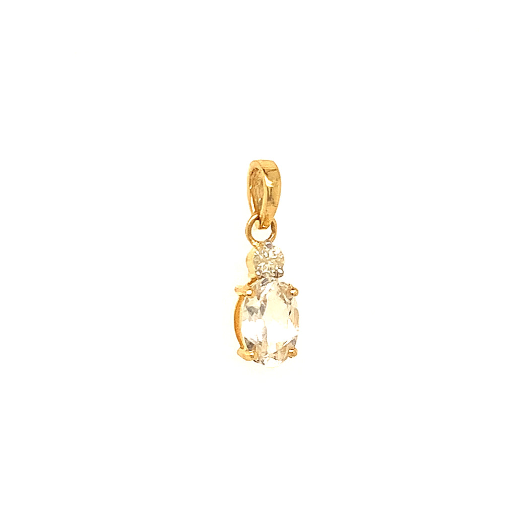 Dije de topacio blanco con diamantes en oro amarillo 14kt.
