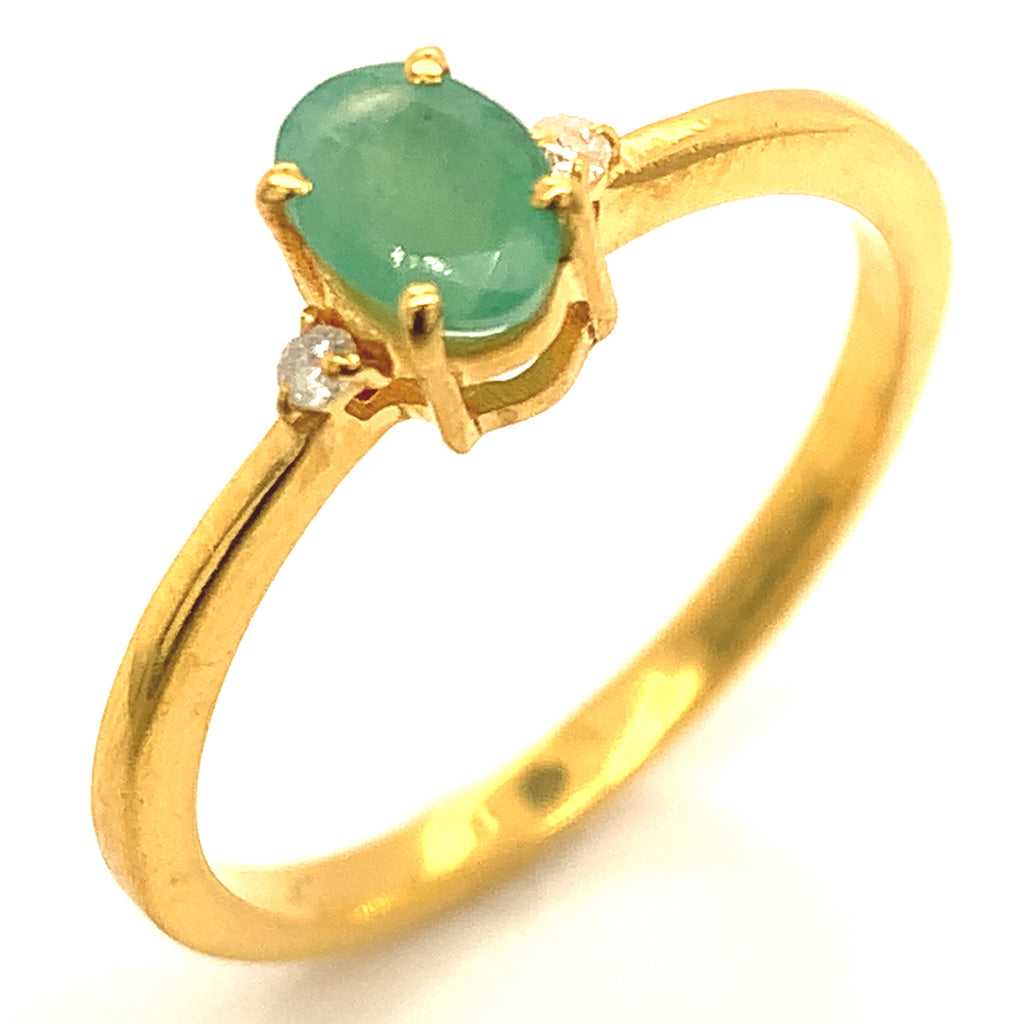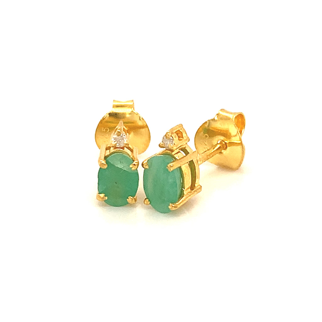 Juego de esmeralda con diamantes en plata 925 (con baño en oro amarillo)