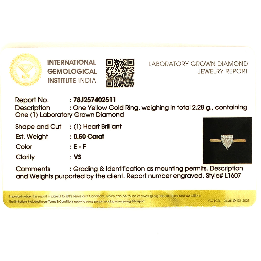 (LD) Anillo con diamante de laboratorio en oro amarillo 14kt.