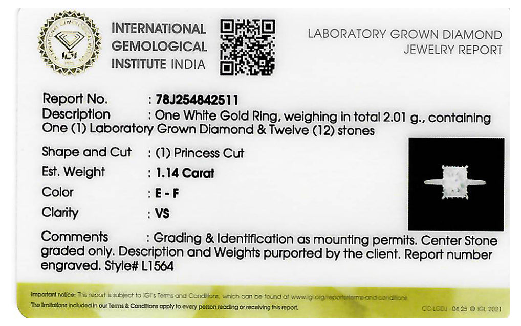 (LD) Anillo con diamante de laboratorio en oro blanco 14kt. D-1.14Cts.