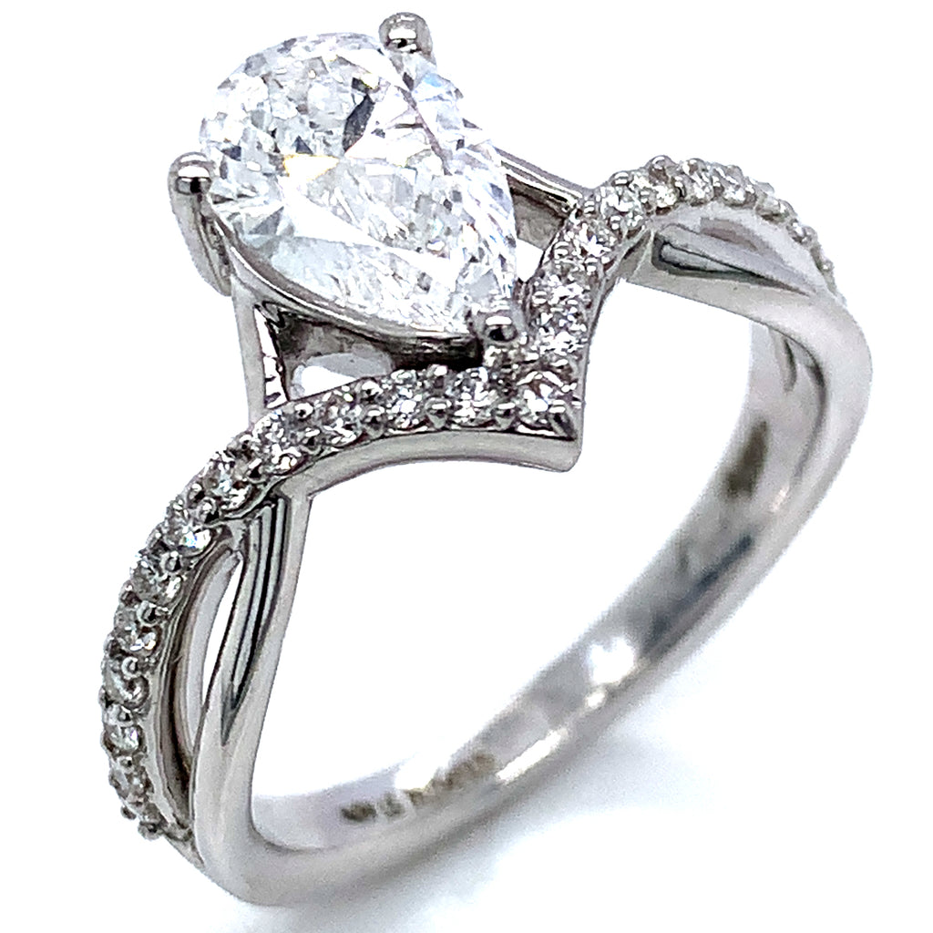 (LD) Anillo con diamante de laboratorio en oro blanco 14kt. D-1.28Cts.
