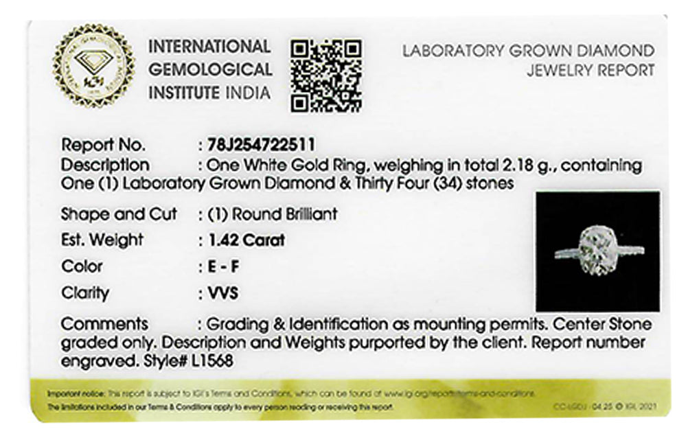 (LD) Anillo con diamante de laboratorio en oro blanco 14kt. D-1.42Cts.