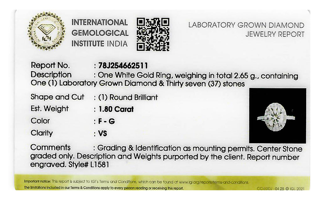 (LD) Anillo con diamante de laboratorio en oro blanco 14kt. D-1.80Cts.