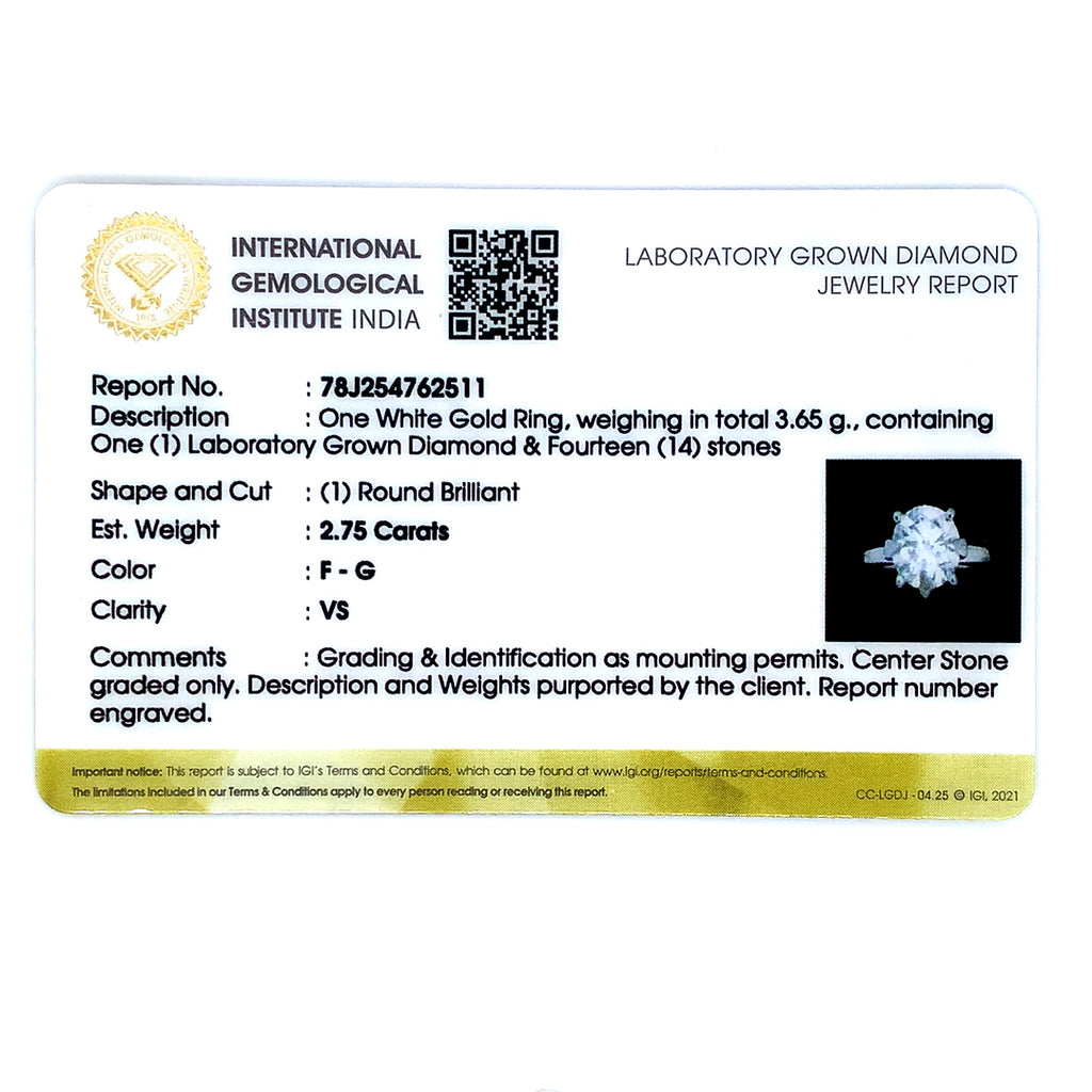 (LD) Anillo con diamante de laboratorio en oro blanco 14kt. D-2.75Cts.