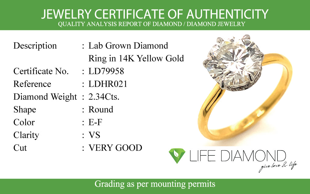 (Life Diamond) Anillo con diamantes de laboratorio en oro amarillo 14kt.