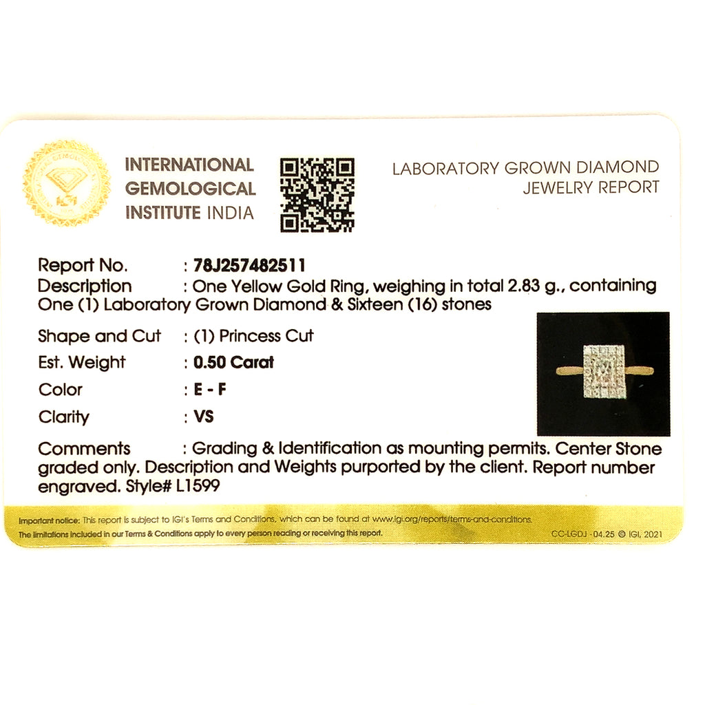 (LD) Anillo con diamantes de laboratorio en oro amarillo 14kt.
