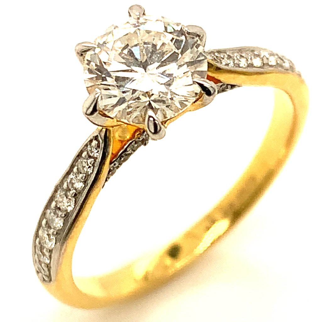 (LD) Anillo con diamantes de laboratorio en oro amarillo 14kt.