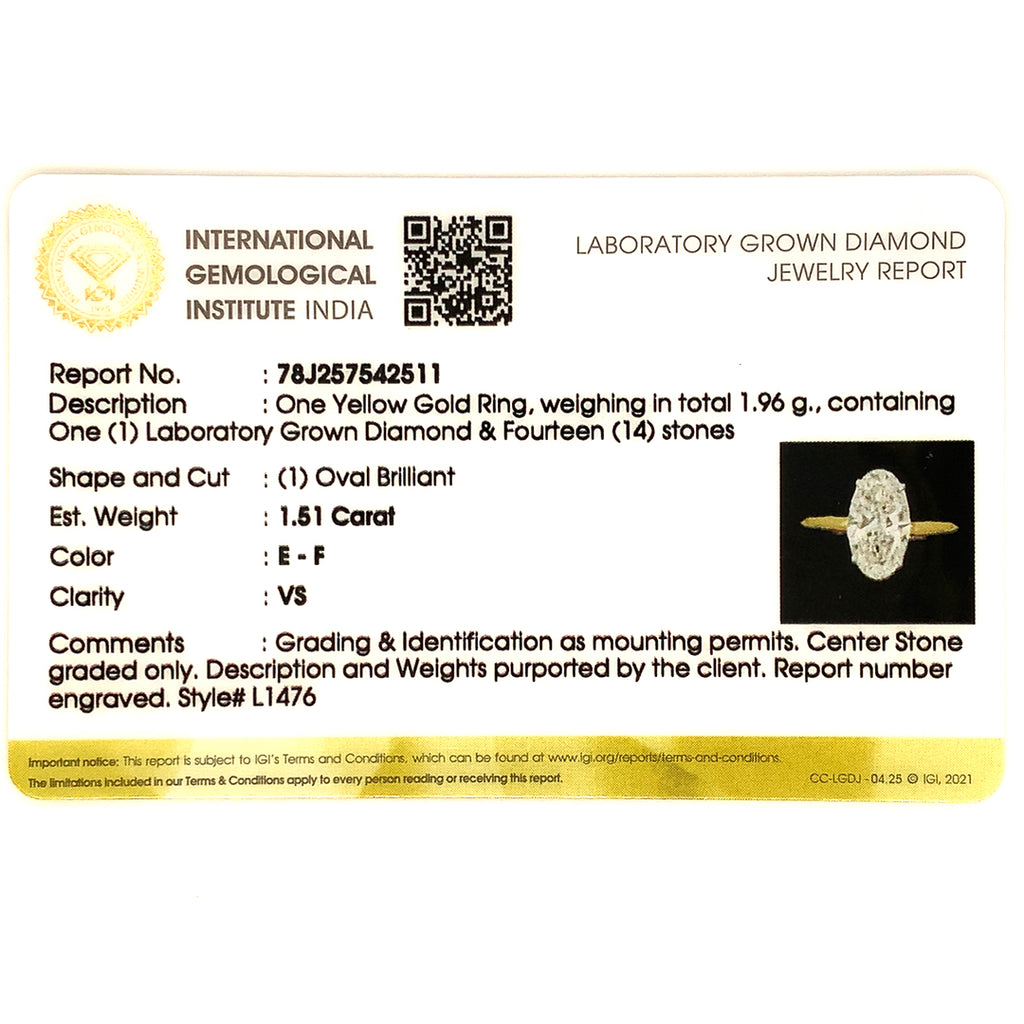 (LD) Anillo con diamantes de laboratorio en oro amarillo 14kt.