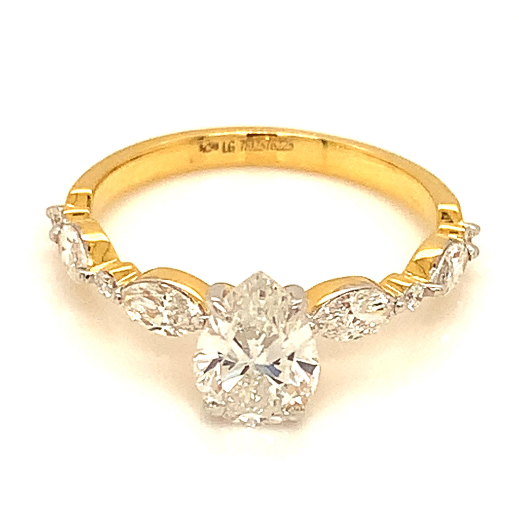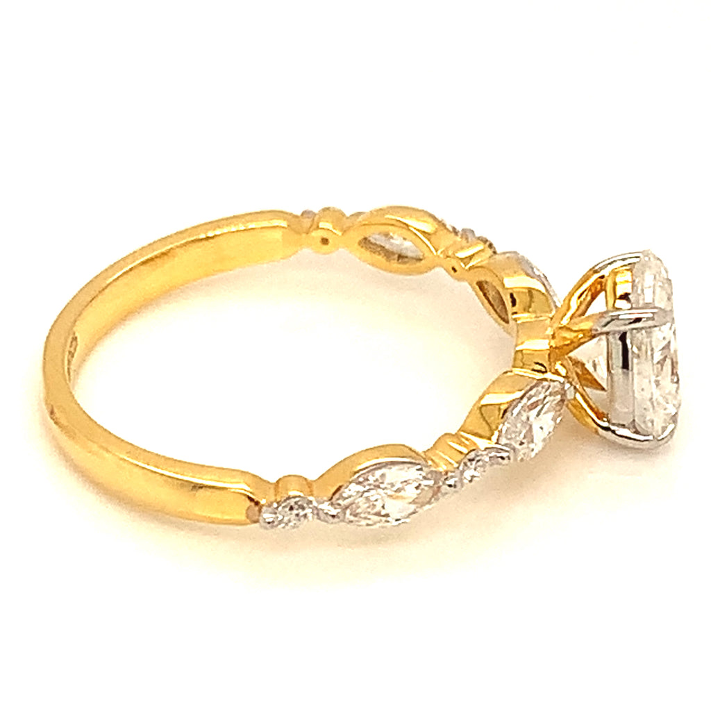 (LD) Anillo con diamantes de laboratorio en oro amarillo 14kt.