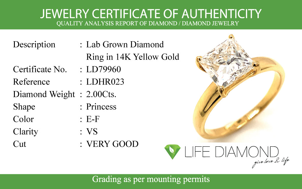 (LD) Anillo con diamantes de laboratorio en oro amarillo 14kt. D-2.00CT