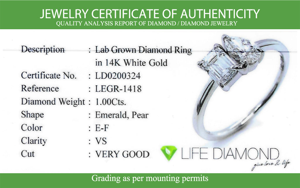(Life Diamond) Anillo con diamantes de laboratorio en oro blanco 14kt.