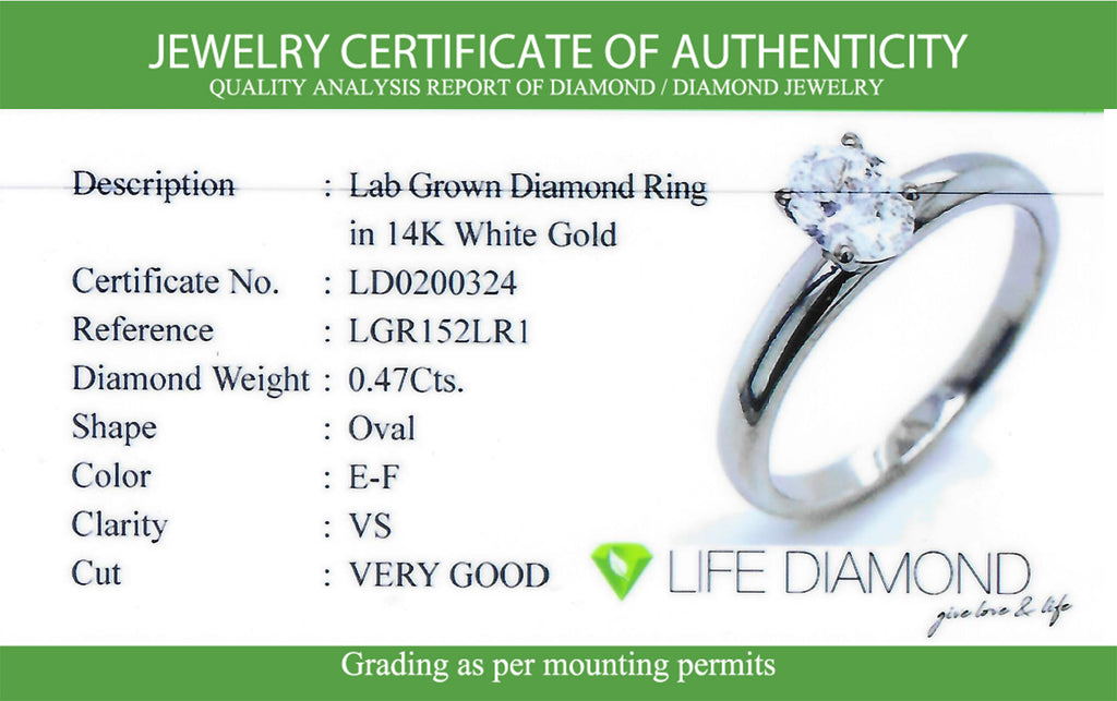 (Life Diamond) Anillo con diamantes de laboratorio en oro blanco 14kt.